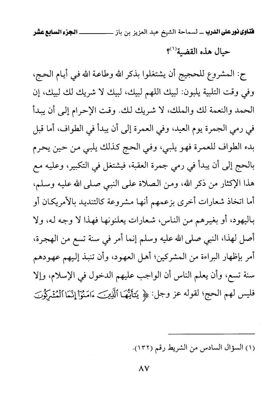 (¬1) السؤال السادس من الشريط رقم (132).