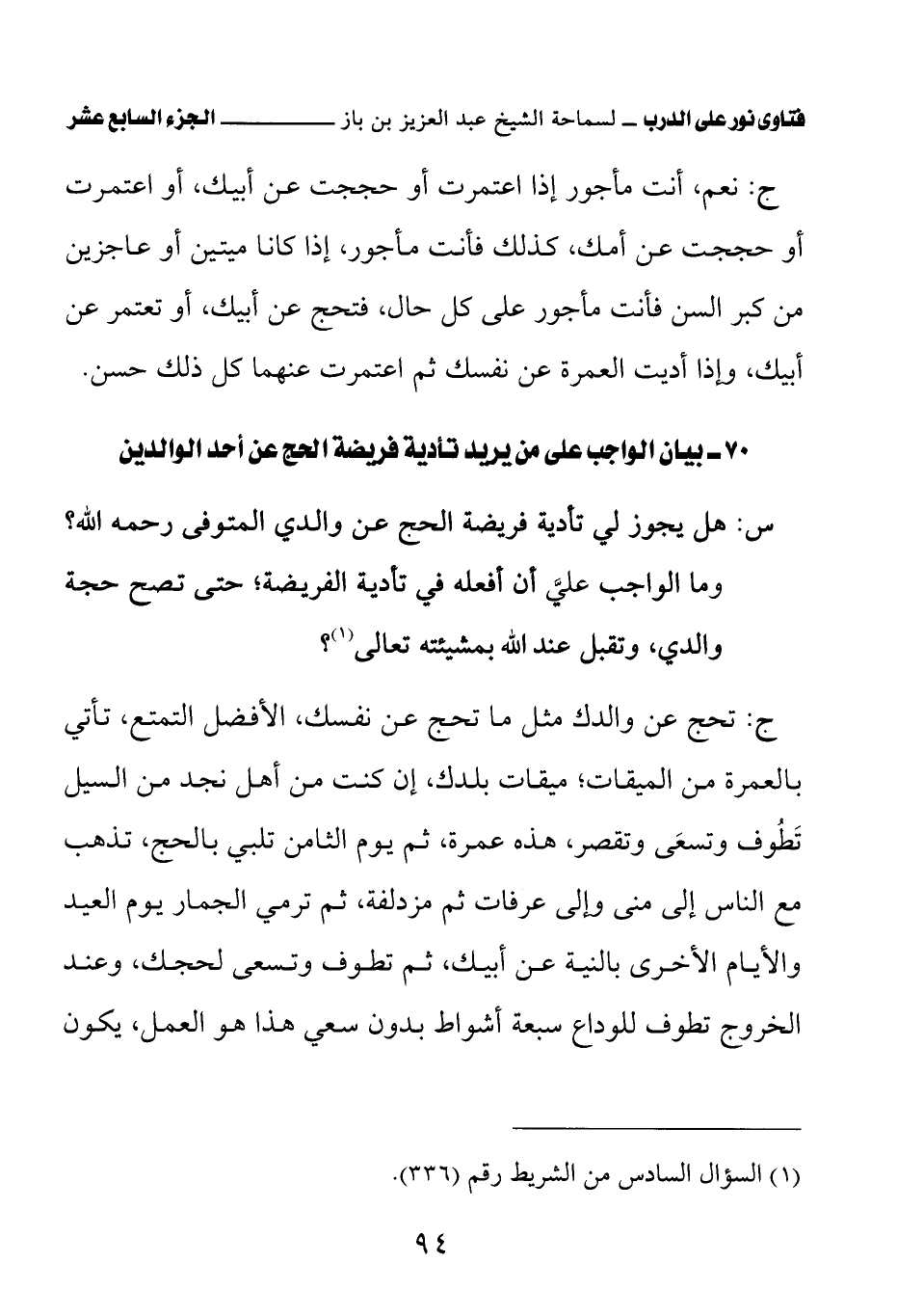 70 - بيان الواجب على ما يريد تأدية فريضة الحج عن أحد الوالدين