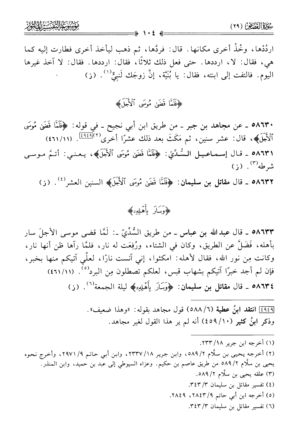 ٥٨٦٣٢ - قال مقاتل بن سليمان: {فلما قضى موسى الأجل} السنين العشر (¬٤). (ز)