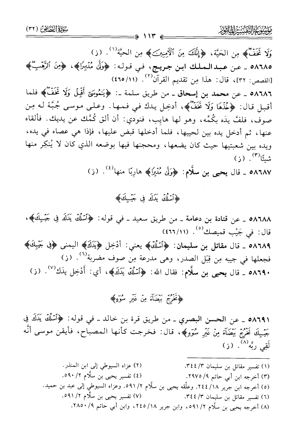 ٥٨٦٩٠ - قال يحيى بن سلّام: فقال الله: {اسلك يدك}، أي: أدْخِل يدَك (¬٧). (ز)