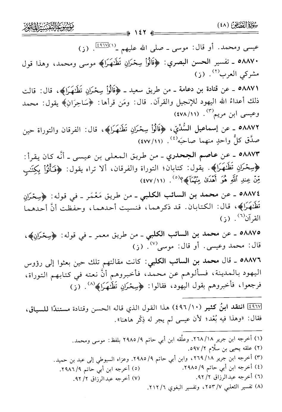 ٥٨٨٧٠ - تفسير الحسن البصري: {قالُواْ سِحْرانِ تَظاهَرا} موسى ومحمد، وهذا قول مشركي العرب (¬٢). (ز)