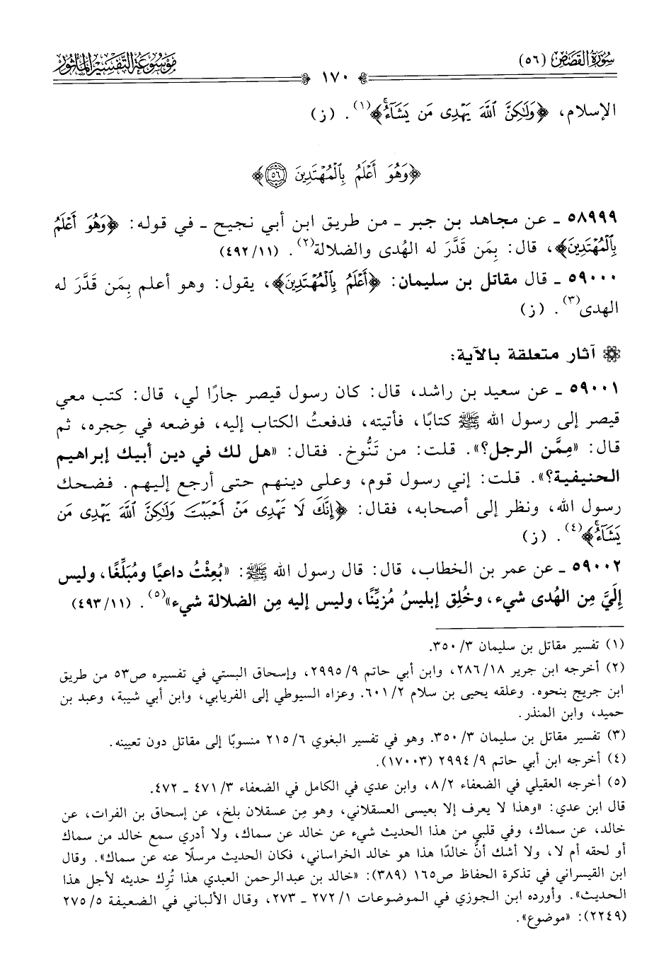 ٥٨٩٩٩ - عن مجاهد بن جبر -من طريق ابن أبي نجيح- في قوله: {وهو أعلم بالمهتدين}، قال: بِمَن قَدَّرَ له الهُدى والضلالة (¬٢). (١١/ ٤٩٢)