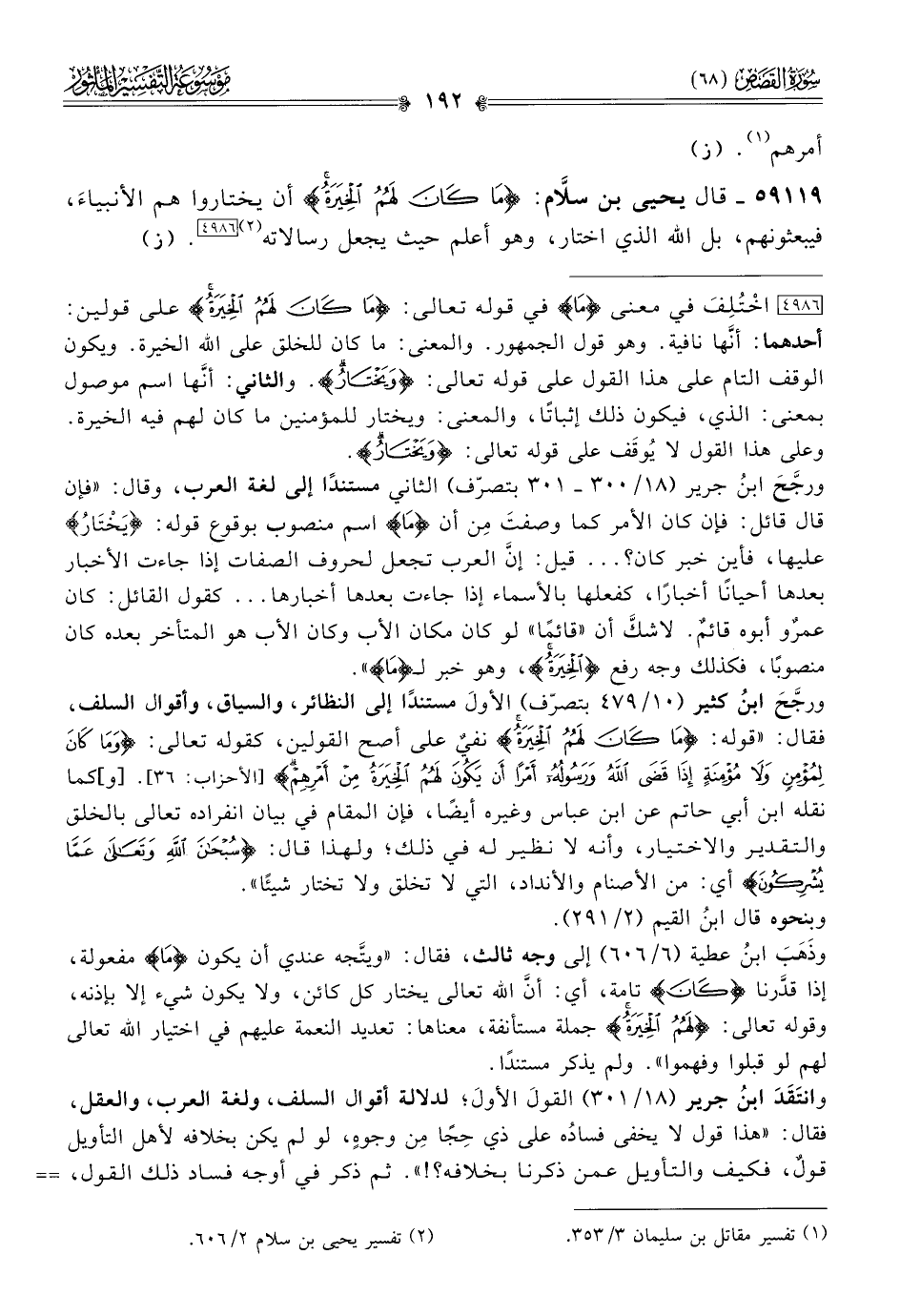 (¬٢) تفسير يحيى بن سلام ٢/ ٦٠٦.