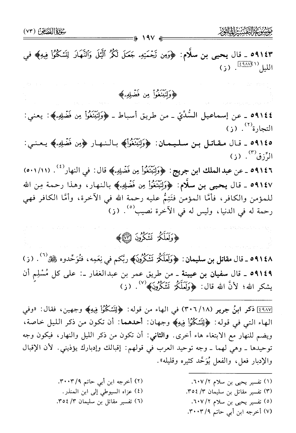 ٥٩١٤٥ - قال مقاتل بن سليمان: {ولتبتغوا} بالنهار {من فضله} يعني: الرِّزق (¬٣). (ز)
