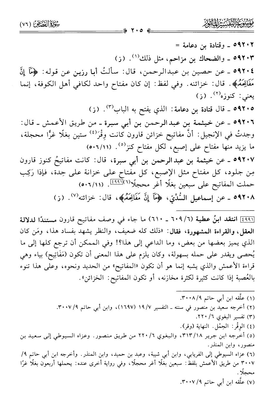 ٥٩٢٠٨ - عن إسماعيل السُّدِّيّ، {ما إن مفاتحه}، قال: خزائنه (¬٧). (ز)