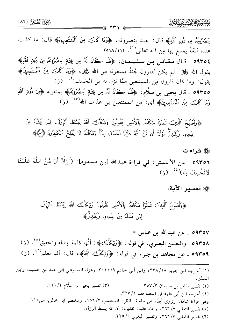 ٥٩٣٥٨ - والحسن البصري، في قوله: {ويكأن}: أنّها كلمة ابتداء وتحقيق (¬٥). (ز)