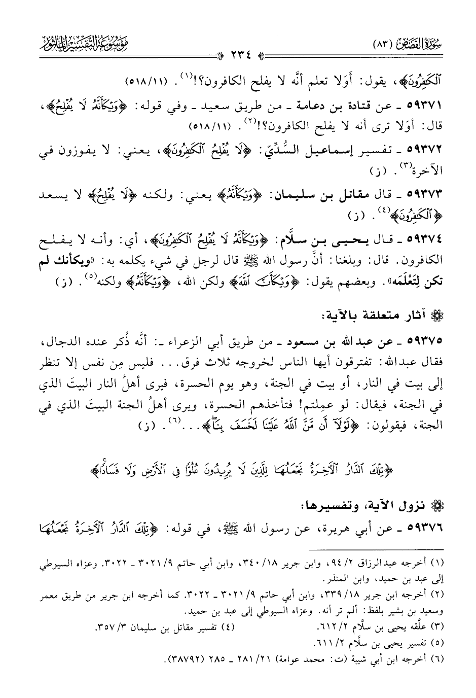 ٥٩٣٧٢ - تفسير إسماعيل السُّدِّيّ: {لا يفلح الكافرون}، يعني: لا يفوزون في الآخرة (¬٣). (ز)