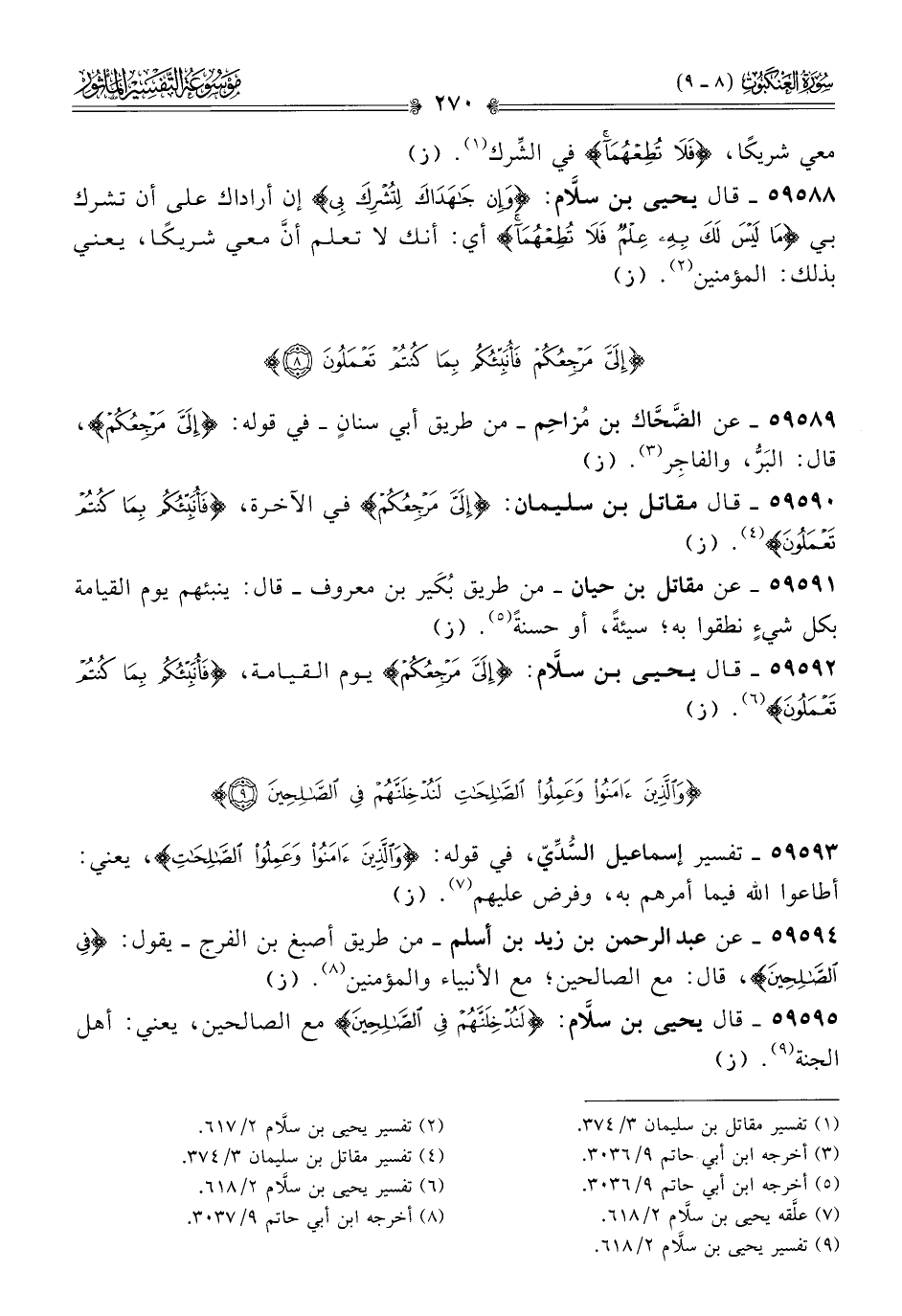 ٥٩٥٩٢ - قال يحيى بن سلّام: {إلي مرجعكم} يوم القيامة، {فأنبئكم بما كنتم تعملون} (¬٦). (ز)