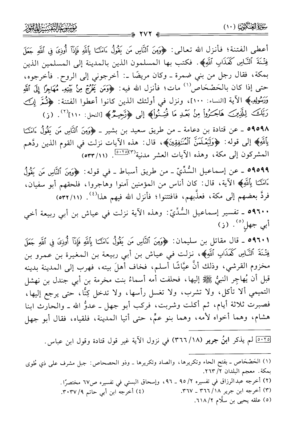 ٥٩٥٩٨ - عن قتادة بن دعامة -من طريق سعيد بن بشير- {ومن الناس من يقول آمنا بالله} إلى قوله {وليعلمن المنافقين}، قال: هذه الآيات نزلت في القوم الذين ردَّهم المشركون إلى مكة، وهذه الآيات العشر مدنية (¬٣) [٥٠٢٥]. (١١/ ٥٣٣)