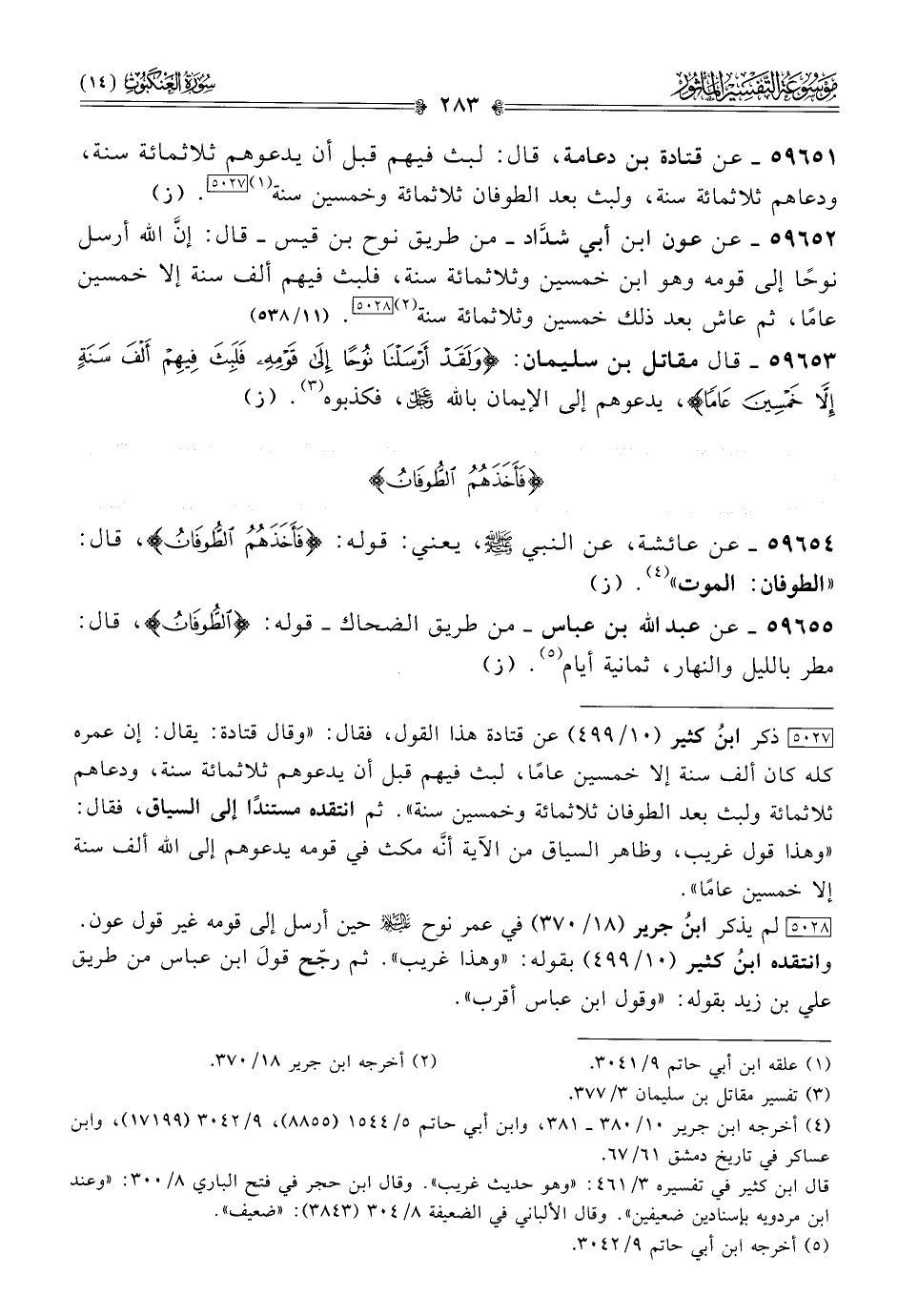 [٥٠٢٨] لم يذكر ابنُ جرير (١٨/ ٣٧٠) في عمر نوح - عليه السلام - حين أرسل إلى قومه غير قول عون.