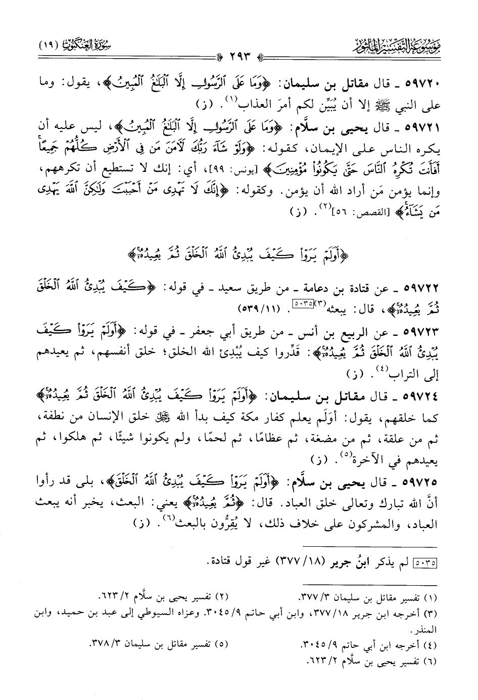 ٥٩٧٢٢ - عن قتادة بن دعامة -من طريق سعيد- في قوله: {كيف يبدئ الله الخلق ثم يعيده}، قال: يبعثه (¬٣) [٥٠٣٥]. (١١/ ٥٣٩)