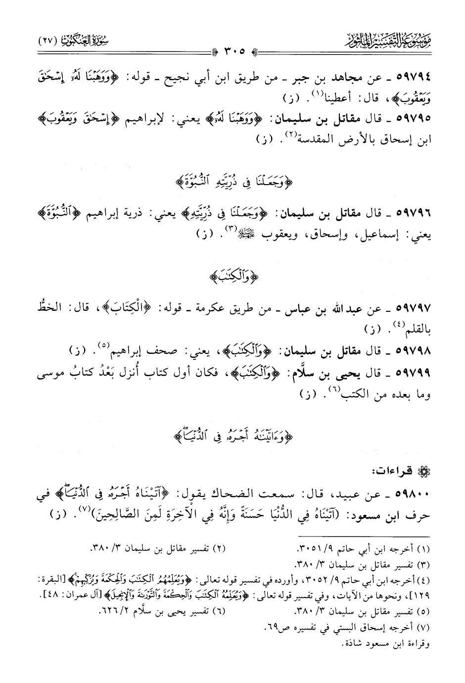 ٥٩٧٩٨ - قال مقاتل بن سليمان: {والكتاب}، يعني: صحف إبراهيم (¬٥). (ز)