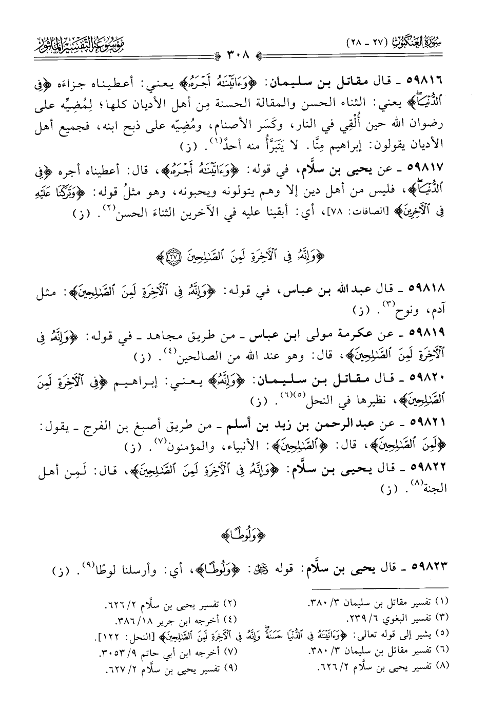 ٥٩٨٢٣ - قال يحيى بن سلّام: قوله - عز وجل -: {ولوطا}، أي: وأرسلنا لوطًا (¬٩). (ز)
