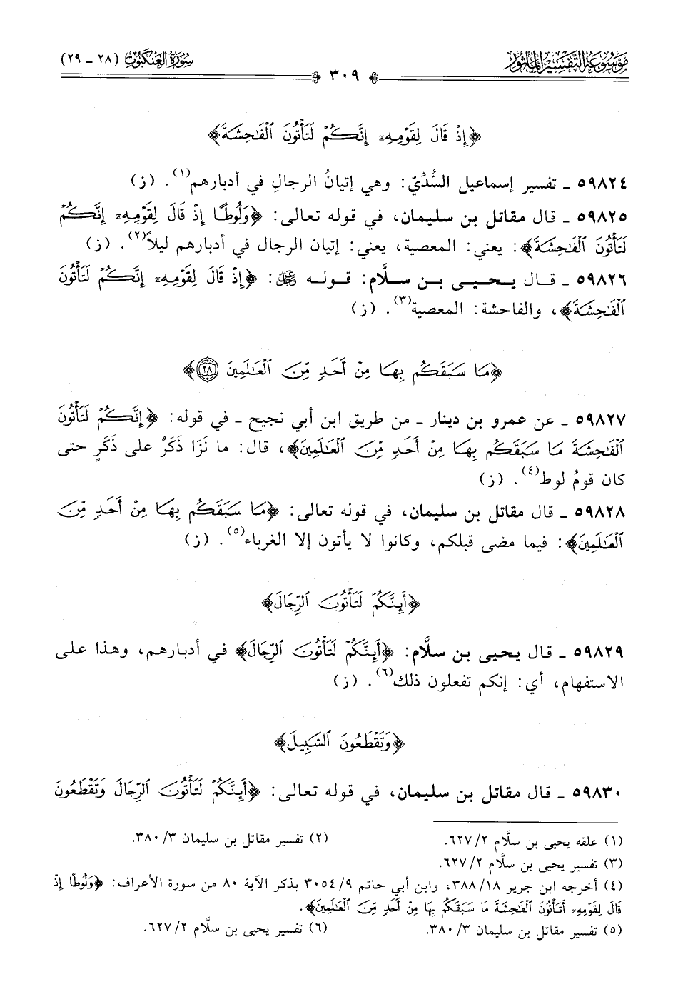 ٥٩٨٢٥ - قال مقاتل بن سليمان، في قوله تعالى: {ولوطًا إذ قال لقومه إنكم لتأتون الفاحشة}: يعني: المعصية، يعني: إتيان الرجال في أدبارهم ليلًا (¬٢). (ز)