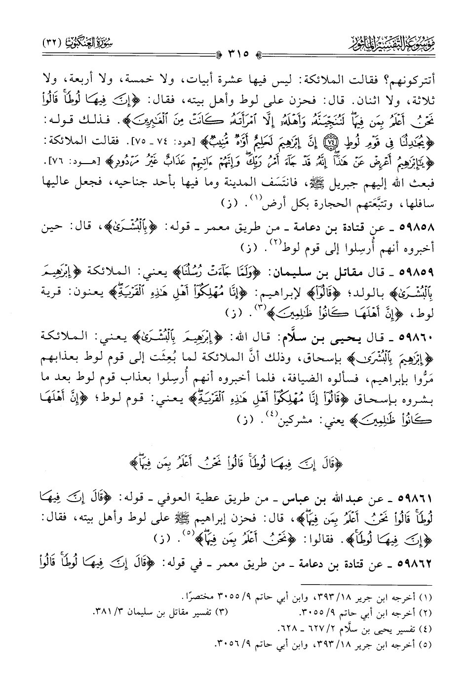 ٥٩٨٦١ - عن عبد الله بن عباس -من طريق عطية العوفي- قوله: {قال إن فيها لوطا قالوا نحن أعلم بمن فيها}، قال: فحزن إبراهيم - صلى الله عليه وسلم - على لوط وأهل بيته، فقال: {إن فيها لوطا}. فقالوا: {نحن أعلم بمن فيها} (¬٥). (ز)