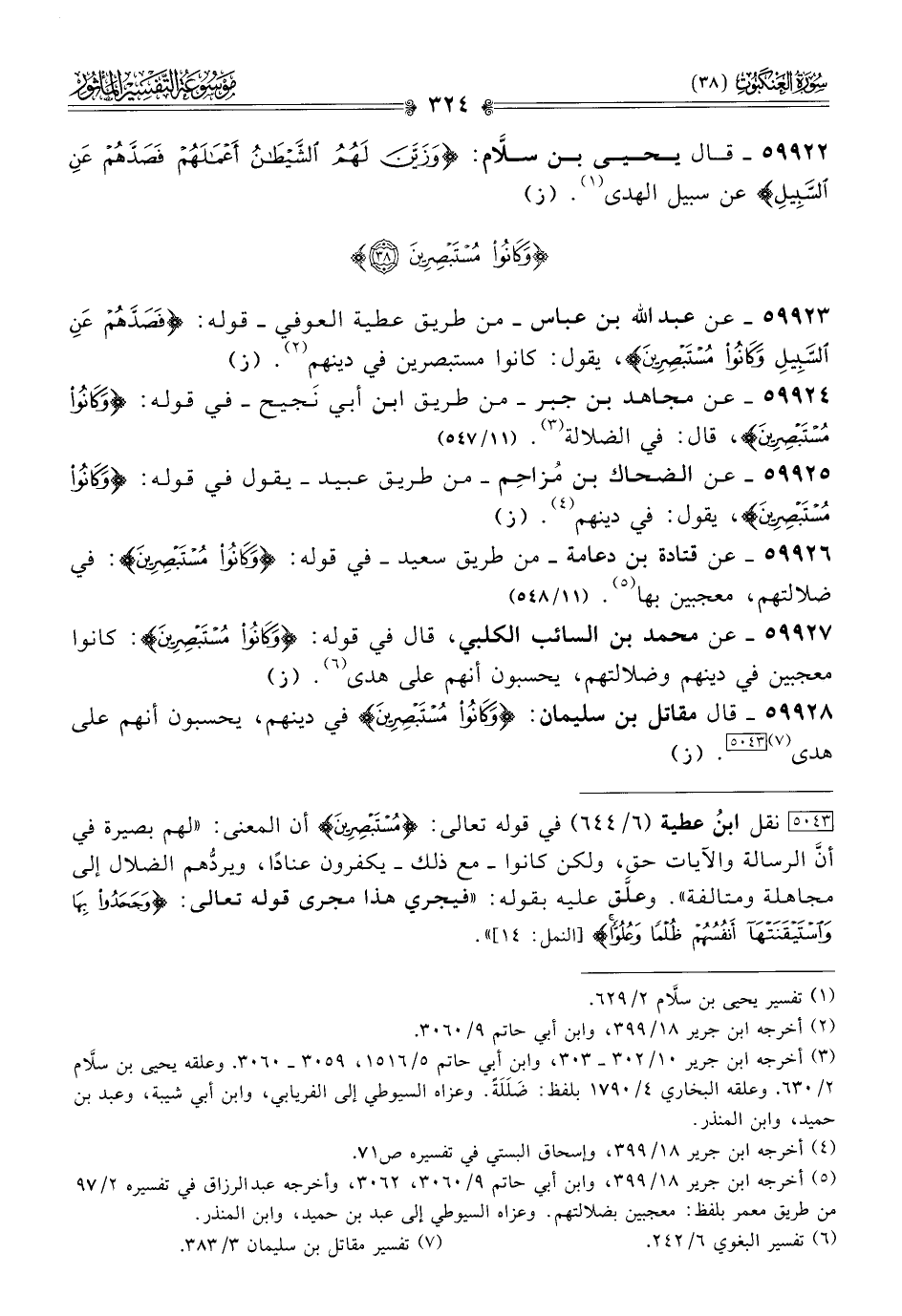 ٥٩٩٢٨ - قال مقاتل بن سليمان: {وكانُواْ مُسْتَبْصِرِينَ} في دينهم، يحسبون أنهم على هدى (¬٧) [٥٠٤٣]. (ز)