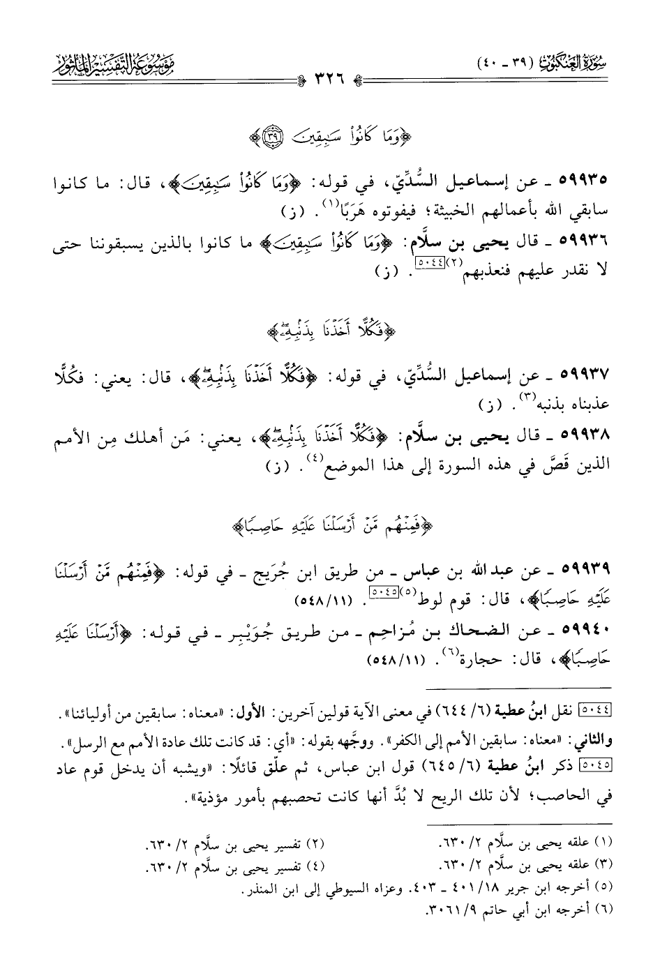 ٥٩٩٣٨ - قال يحيى بن سلّام: {فكلا أخذنا بذنبه}، يعني: مَن أهلك مِن الأمم الذين قَصَّ في هذه السورة إلى هذا الموضع (¬٤). (ز)