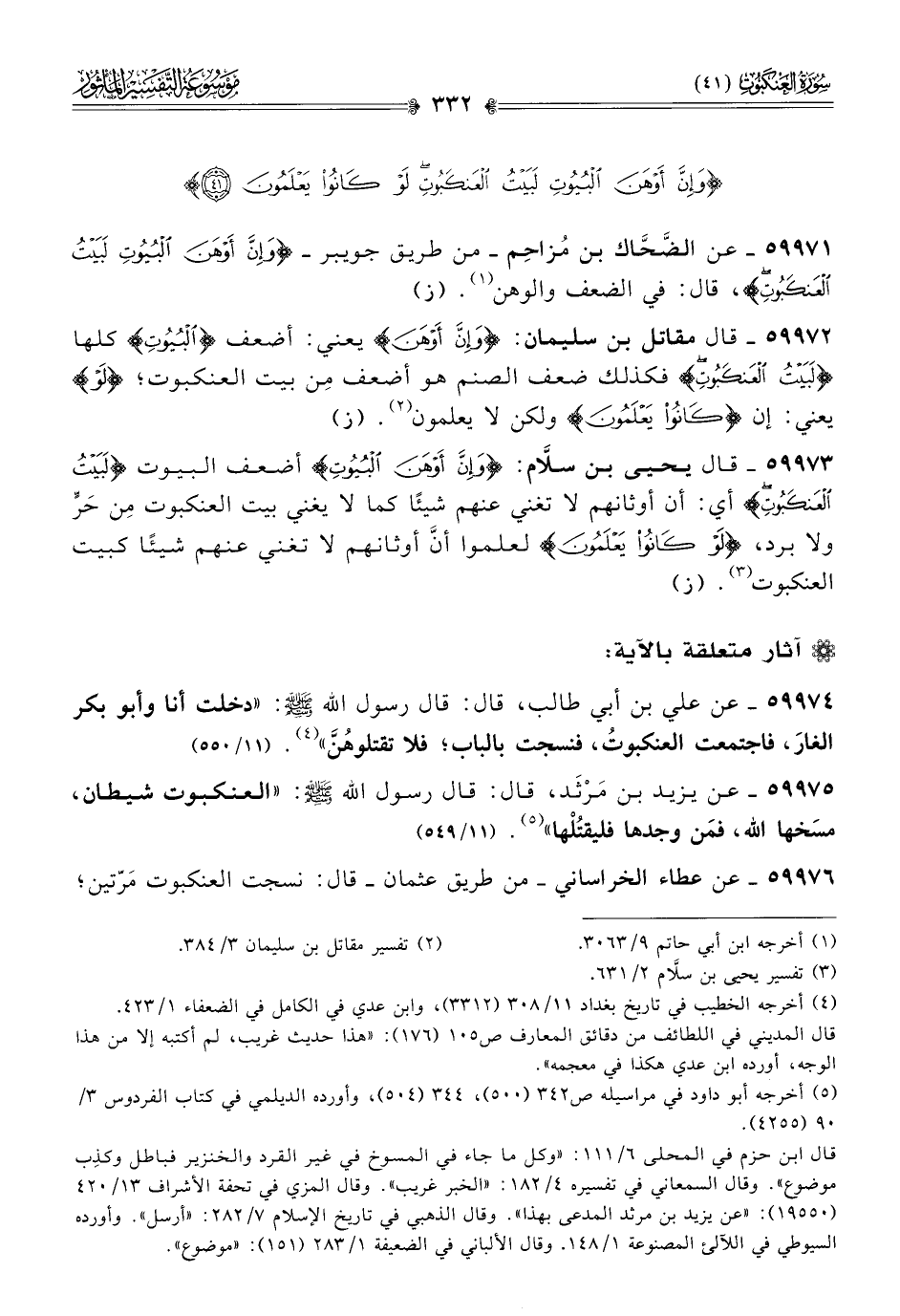 ٥٩٩٧١ - عن الضَّحّاك بن مُزاحِم -من طريق جويبر- {وإن أوهن البيوت لبيت العنكبوت}، قال: في الضعف والوهن (¬١). (ز)