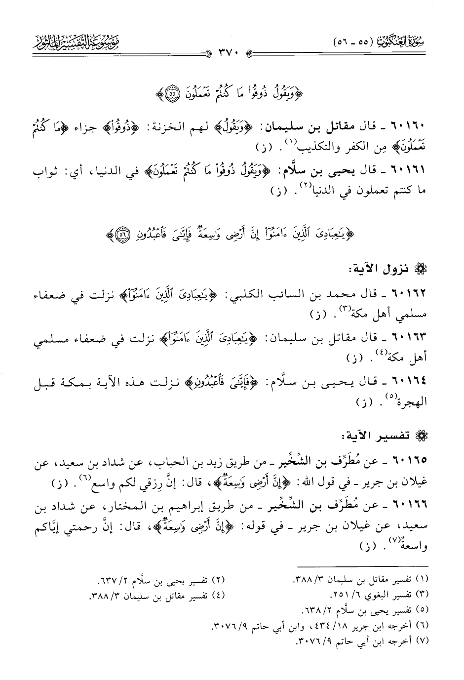 ٦٠١٦٢ - قال محمد بن السائب الكلبي: {يا عبادي الذين آمنوا} نزلت في ضعفاء مسلمي أهل مكة (¬٣). (ز)