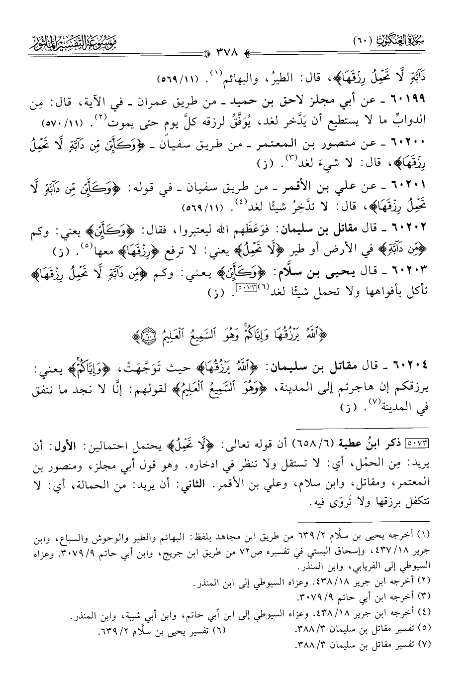 ٦٠٢٠٠ - عن منصور بن المعتمر -من طريق سفيان- {وكأين من دابة لا تحمل رزقها}، قال: لا شيءَ لغد (¬٣). (١١/ ٥٦٩)