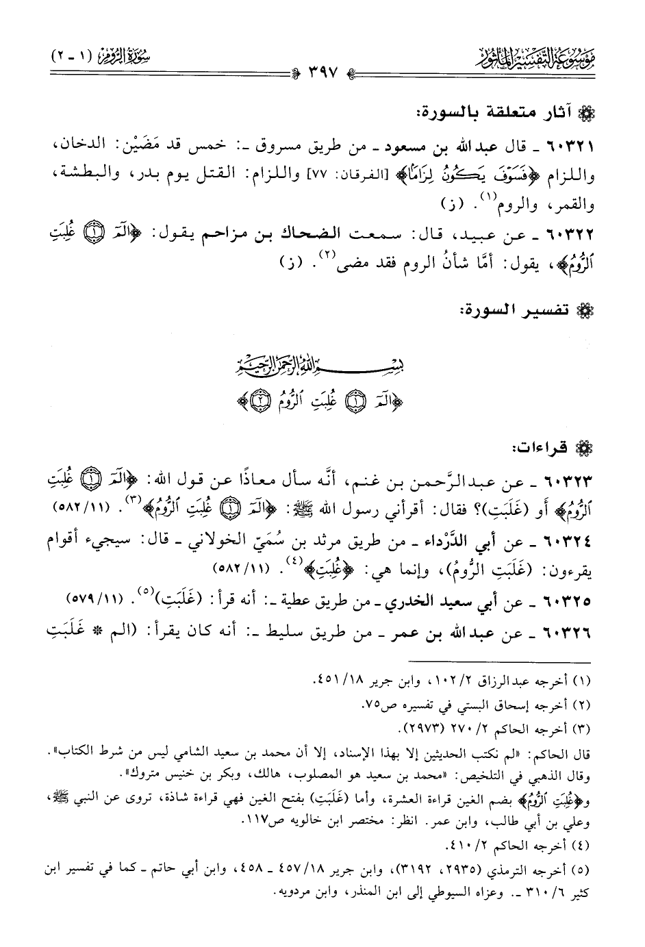 ٦٠٣٢٦ - عن عبد الله بن عمر -من طريق سليط- أنه كان يقرأ: (الم * غَلَبَتِ