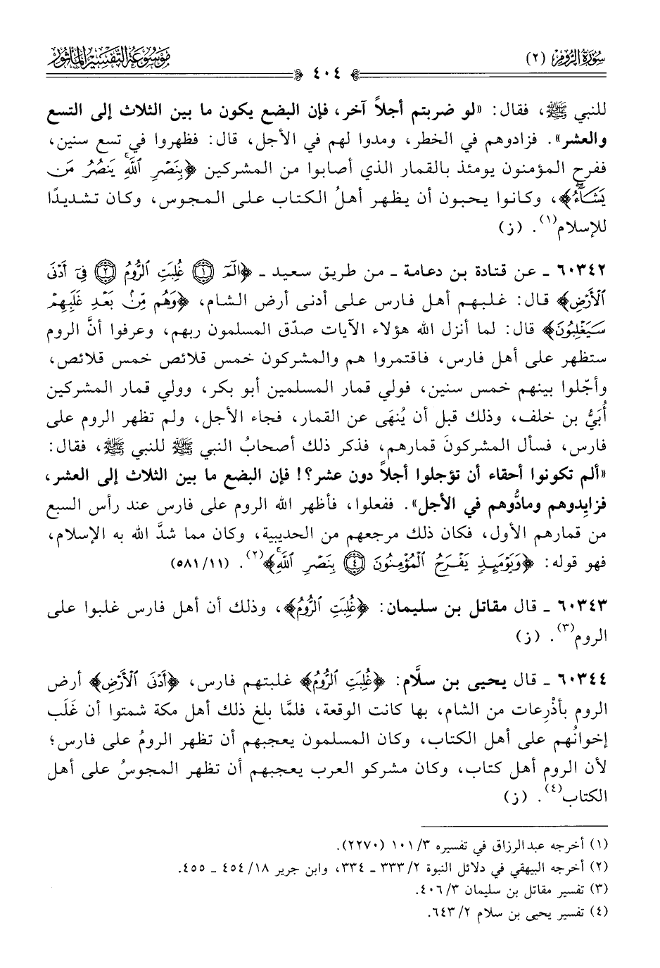 ٦٠٣٤٣ - قال مقاتل بن سليمان: {غُلِبَتِ الرُّومُ}، وذلك أن أهل فارس غلبوا على الروم (¬٣). (ز)