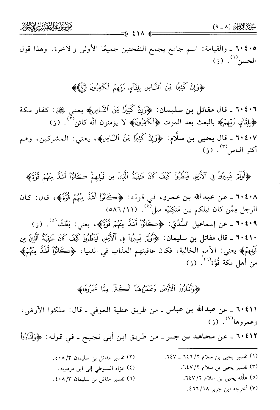 (¬١) تفسير يحيى بن سلام ٢/ ٦٤٦ - ٦٤٧.
