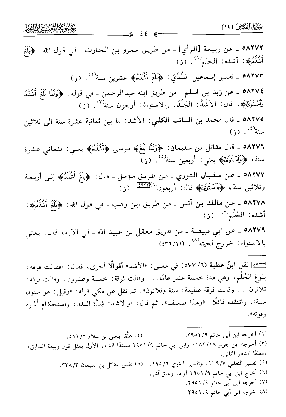 ٥٨٢٧٣ - تفسير إسماعيل السُّدِّيّ: {بلغ أشده} عشرين سنة (¬٢). (ز)