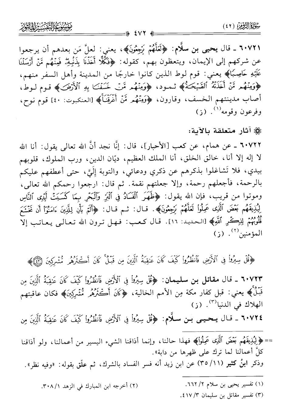٦٠٧٢٤ - قال يحيى بن سلّام: {قُلْ سِيرُوا فِي الأَرْضِ فانْظُرُوا كَيْفَ كانَ عاقِبَةُ الَّذِينَ مِن