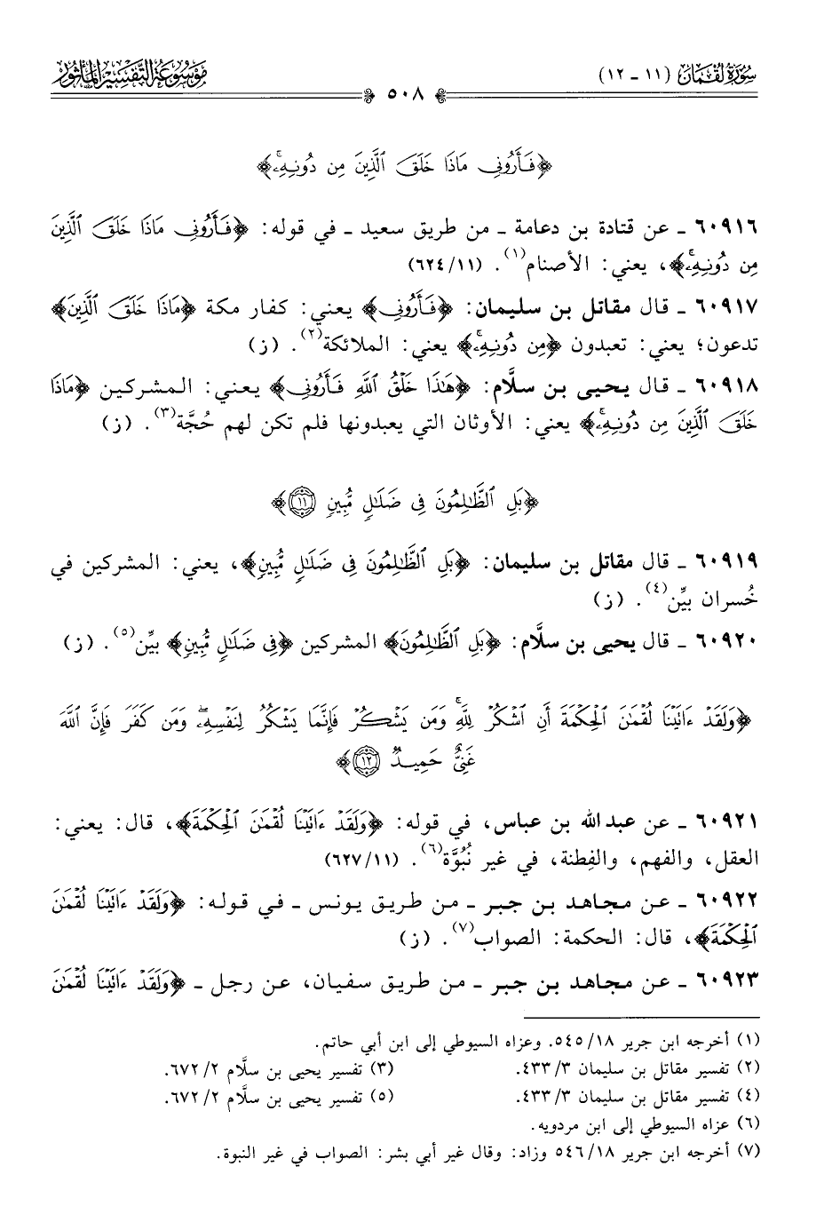 ٦٠٩٢١ - عن عبد الله بن عباس، في قوله: {ولَقَدْ آتَيْنا لُقْمانَ الحِكْمَةَ}، قال: يعني: العقل، والفهم، والفِطنة، في غير نُبُوَّة (¬٦). (١١/ ٦٢٧)