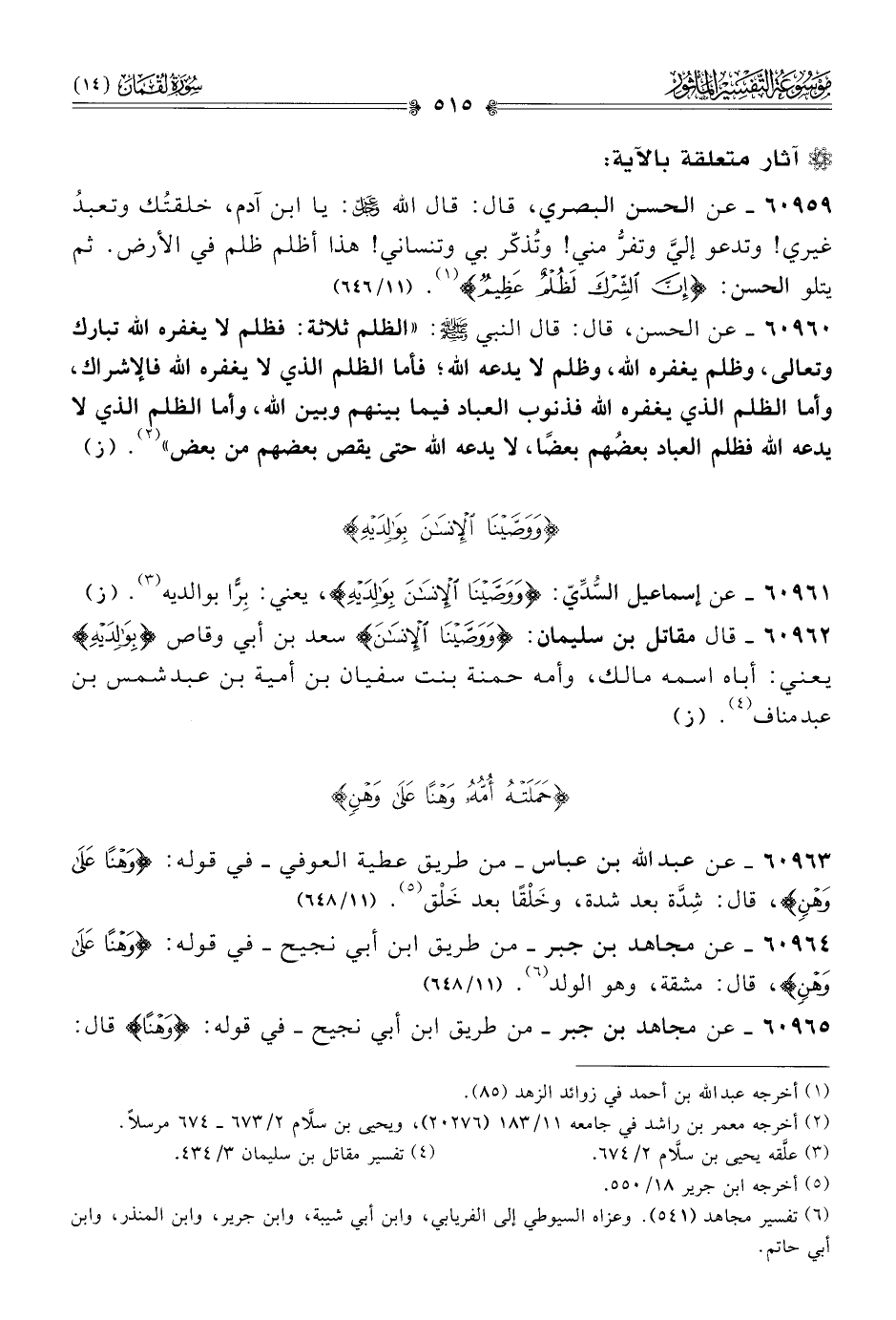 ٦٠٩٦١ - عن إسماعيل السُّدِّيّ: {ووَصَّيْنا الإنْسانَ بِوالِدَيْهِ}، يعني: بِرًّا بوالديه (¬٣). (ز)
