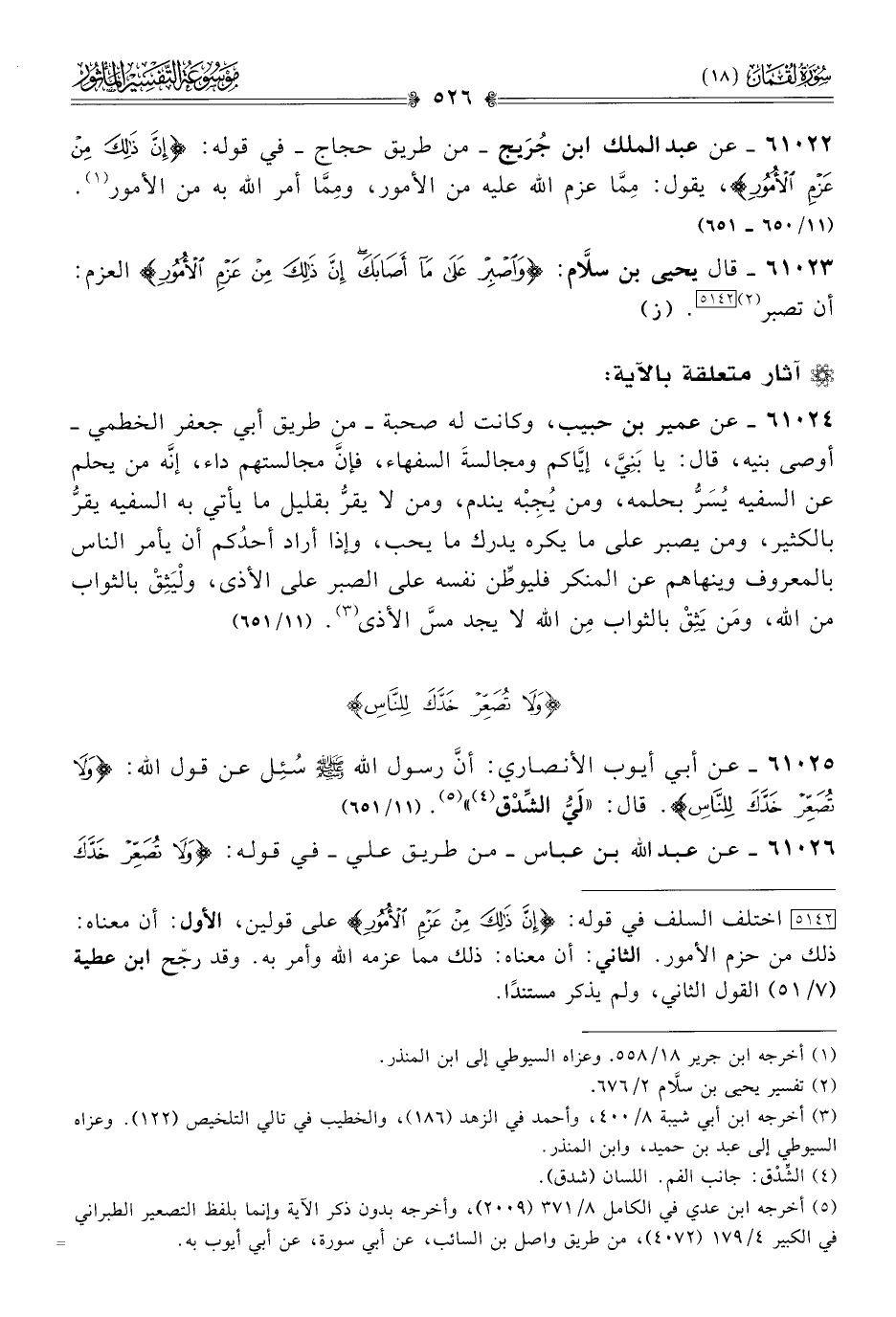 ٦١٠٢٢ - عن عبد الملك ابن جُرَيج -من طريق حجاج- في قوله: {إنَّ ذَلِكَ مِن عَزْمِ الأُمُورِ}، يقول: مِمّا عزم الله عليه من الأمور، ومِمّا أمر الله به من الأمور (¬١). (١١/ ٦٥٠ - ٦٥١)