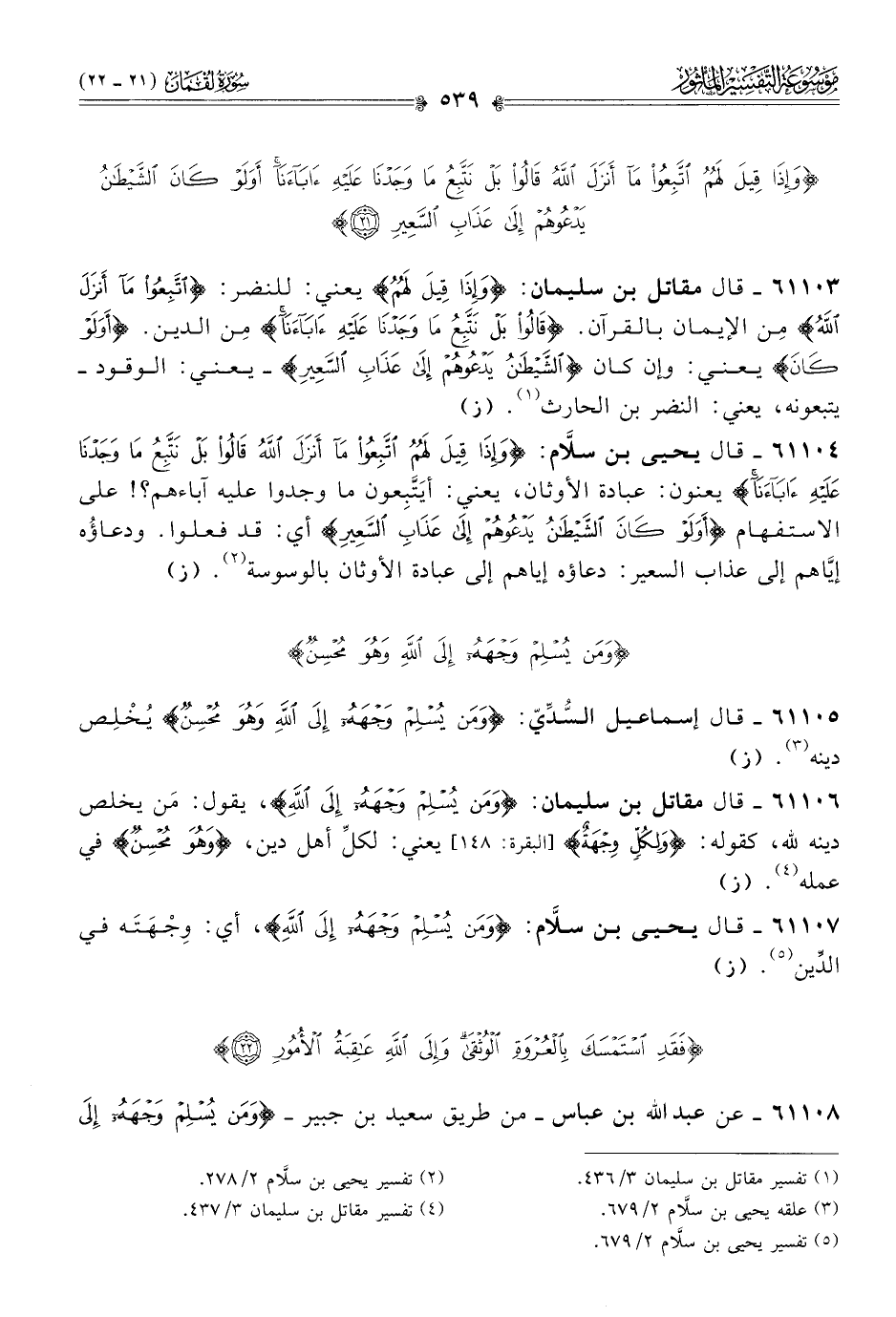 ٦١١٠٨ - عن عبد الله بن عباس -من طريق سعيد بن جبير- {ومَن يُسْلِمْ وجْهَهُ إلى