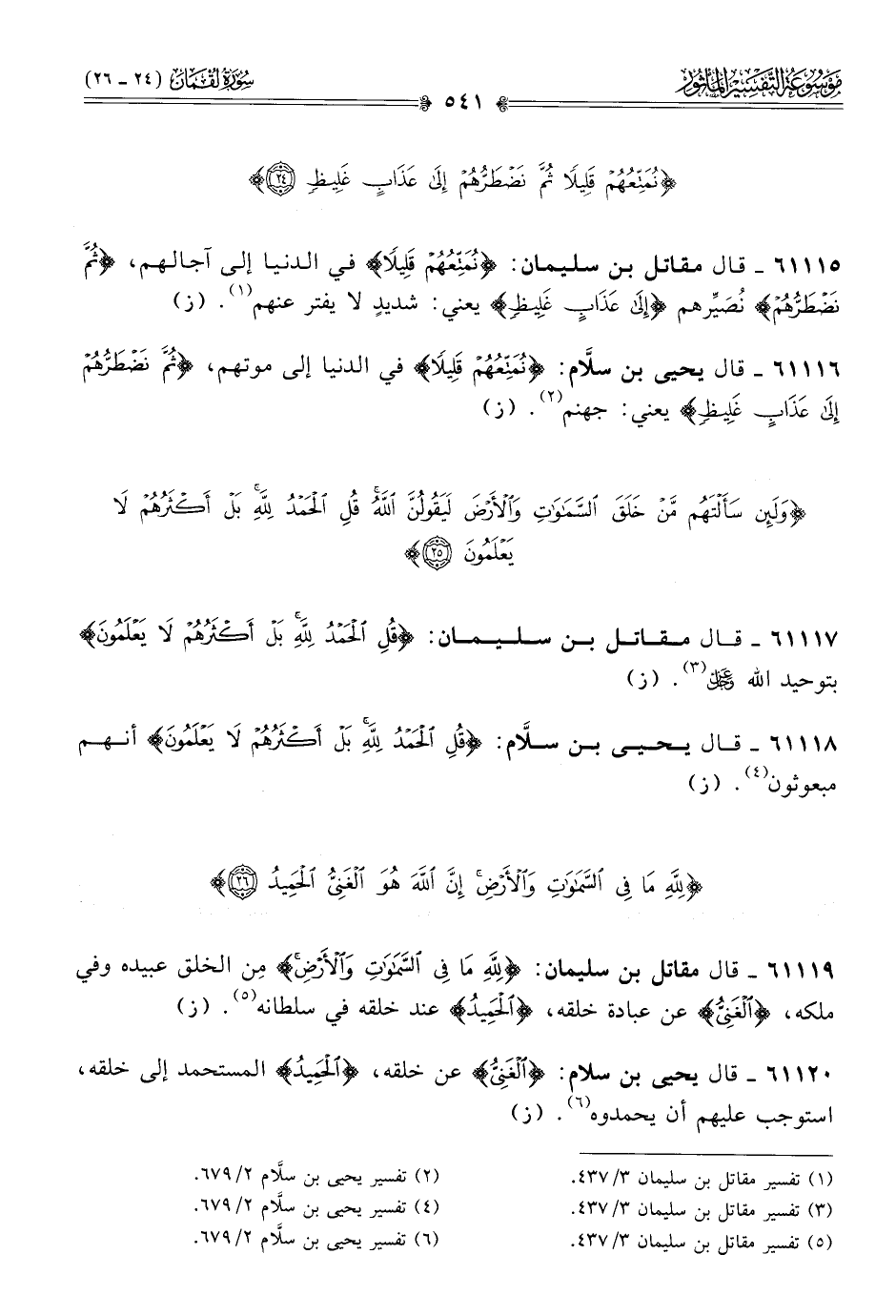 (¬٢) تفسير يحيى بن سلّام ٢/ ٦٧٩.