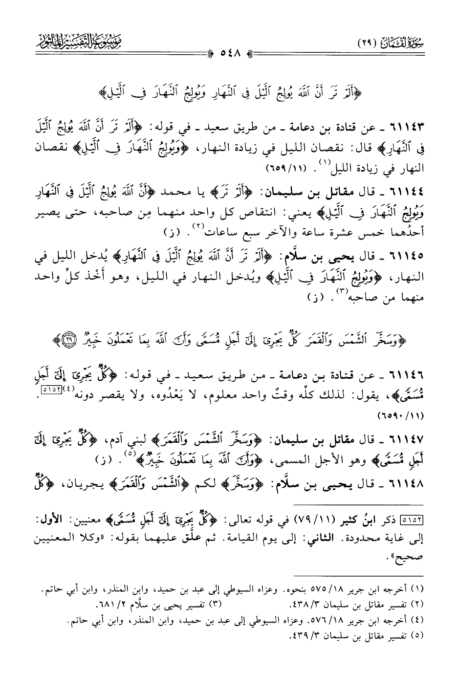 ٦١١٤٨ - قال يحيى بن سلّام: {وسَخَّرَ} لكم {الشَّمْسَ والقَمَرَ} يجريان، {كُلٌّ