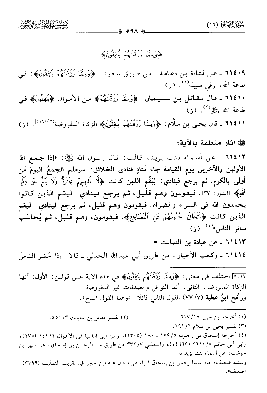 ٦١٤١١ - قال يحيى بن سلّام: {ومِمّا رَزَقْناهُمْ يُنْفِقُونَ} الزكاة المفروضة (¬٣) [٥١٦٩]. (ز)