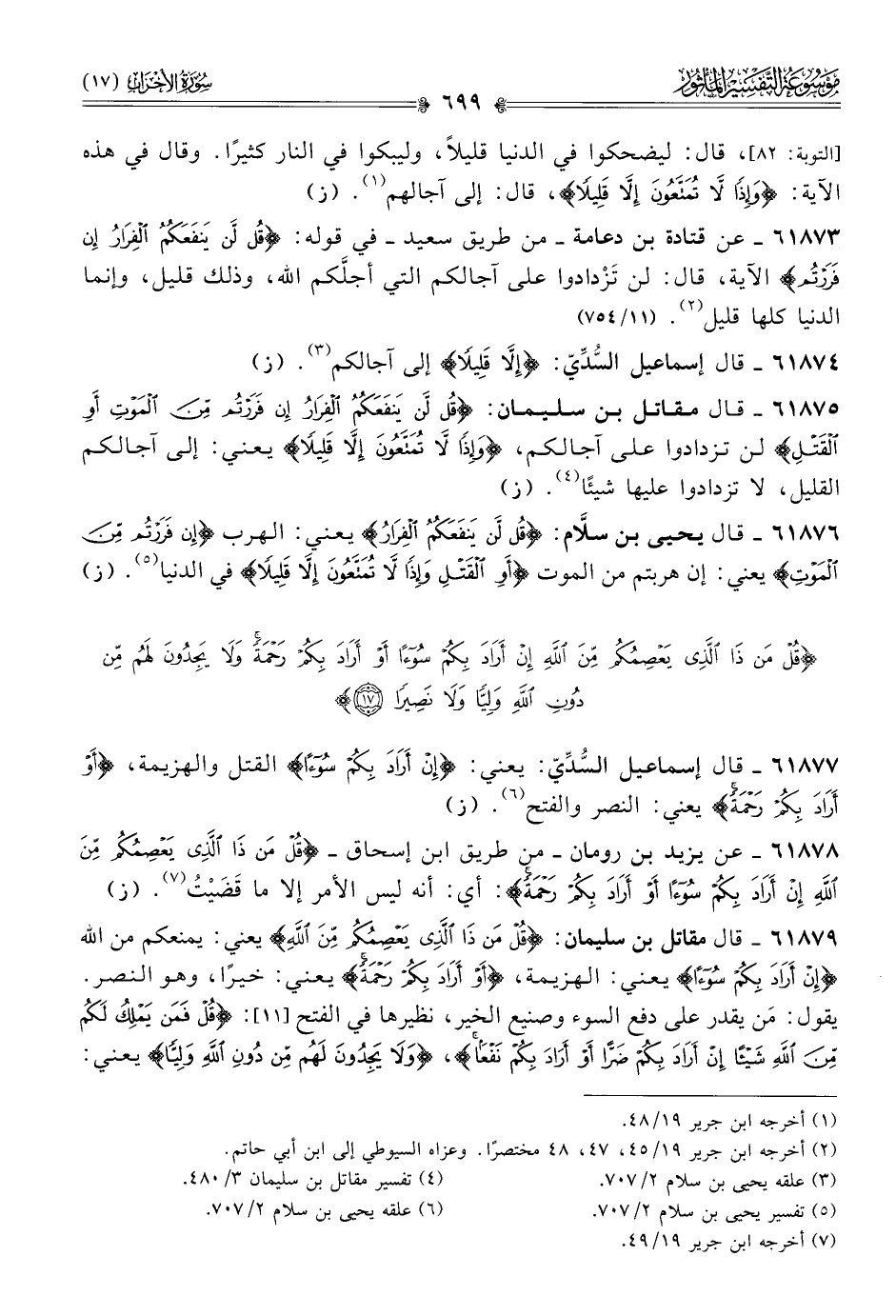(¬٥) تفسير يحيى بن سلام ٢/ ٧٠٧.