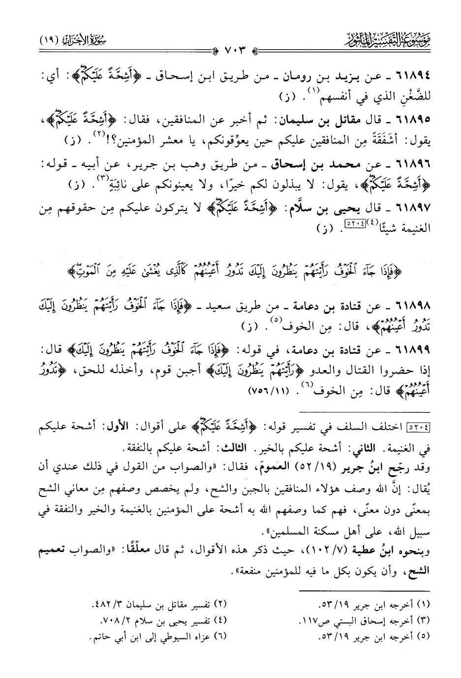 ٦١٨٩٧ - قال يحيى بن سلّام: {أشِحَّةً عَلَيْكُمْ} لا يتركون عليكم مِن حقوقهم مِن الغنيمة شيئًا (¬٤) [٥٢٠٤]. (ز)