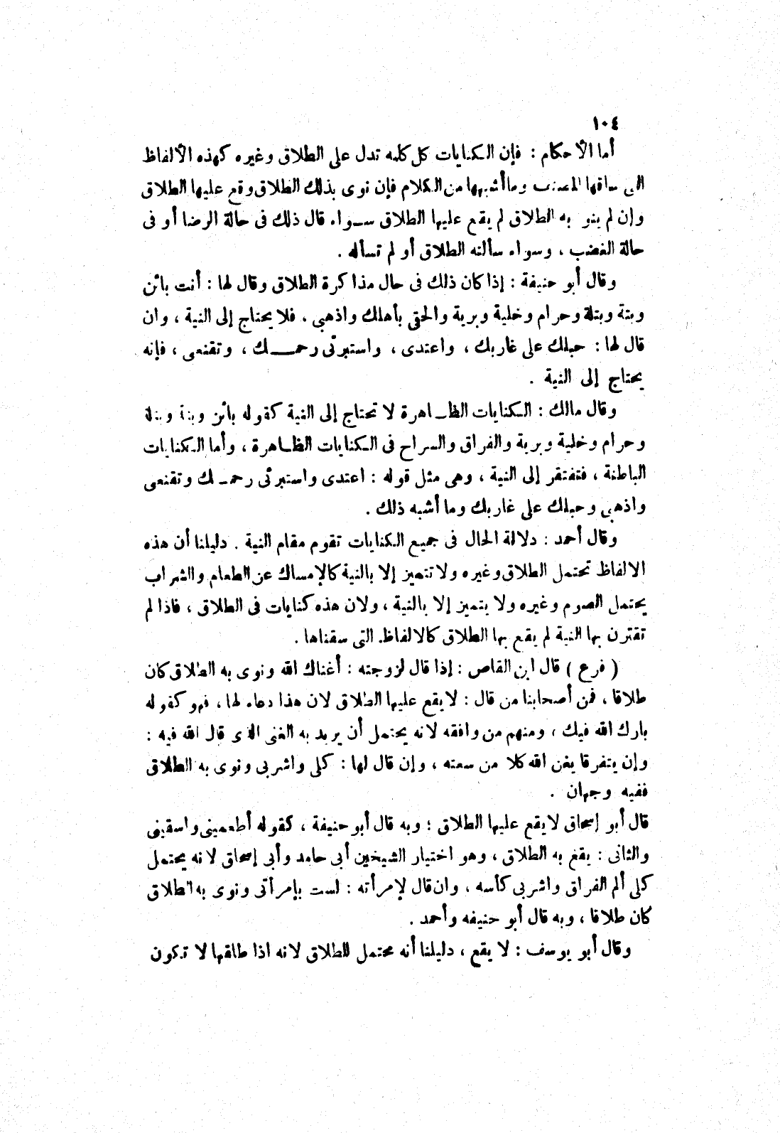 أما الاحكام: فإن الكنايات كل كلمه تدل على الطلاق وغيره كهذه الالفاظ