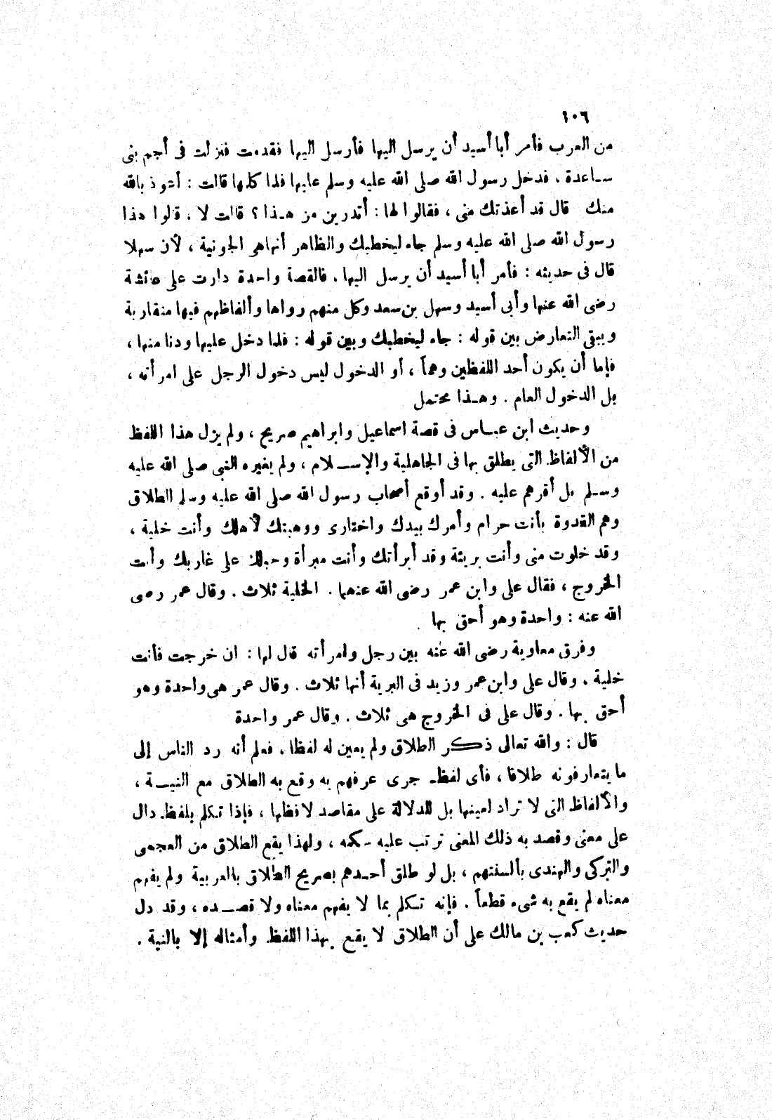 وقال عمر واحدة قال: والله تعالى ذكر الطلاق ولم يعين له لفظا، فعلم أنه رد الناس إلى ما يتعارفونه طلاقا، فأى لفظ جرى عرفهم به وقع به الطلاق مع النية، والالفاظ التى لا تراد لعينها بل للدلالة على مقاصد لافظها، فإذا تكلم بلفظ دال على معنى وقصد به ذلك المعنى ترتب عليه حكمه، ولهذا يقع الطلاق من العجمي والتركى والهندي بألسنتهم، بل لو طلق أحدهم بصريح الطلاق بالعربية ولم يفهم معناه لم يقع به شئ قطعا.