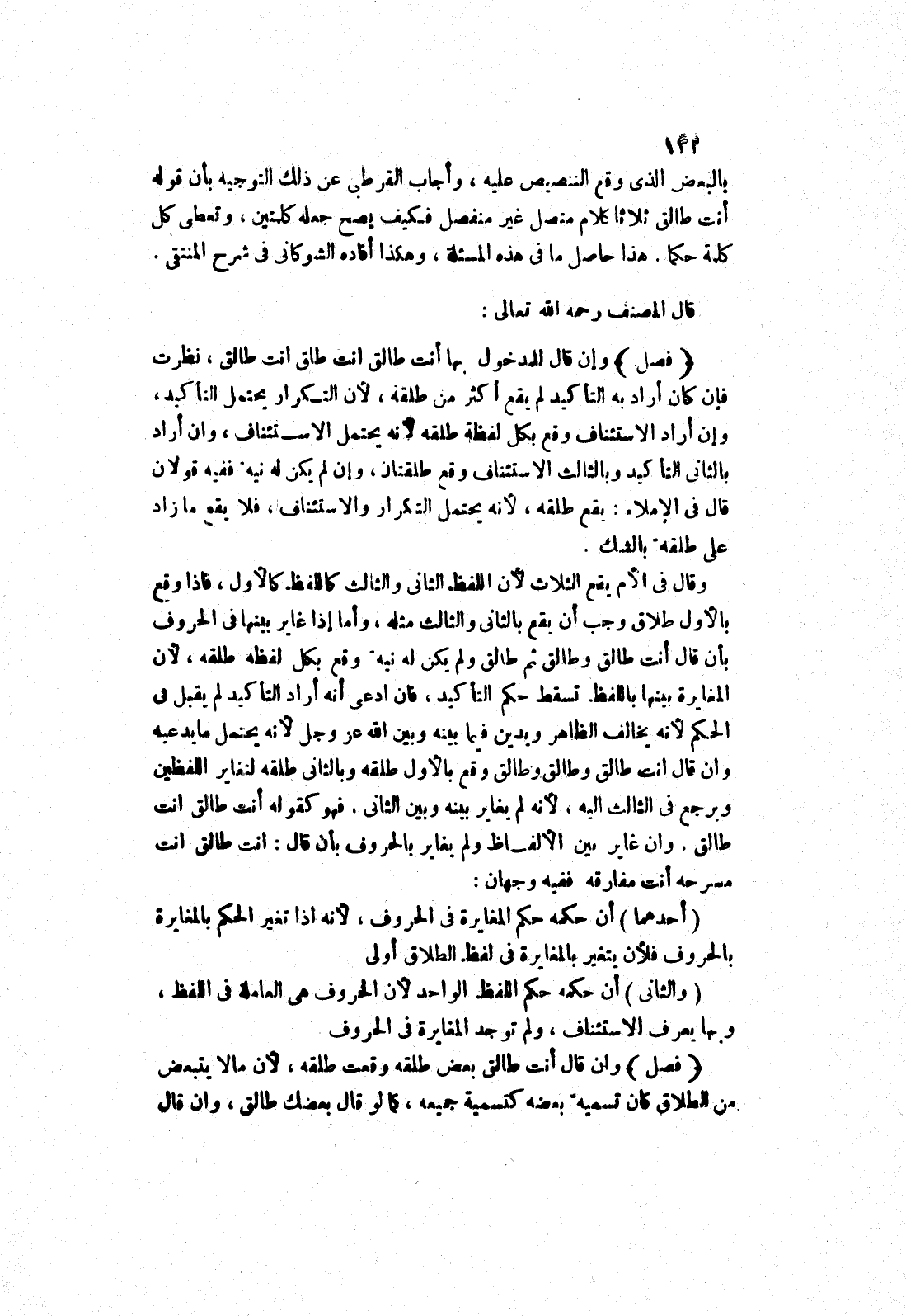 بالبعض الذى وقع التنصيص عليه، وأجاب القرطبى عن ذلك التوجيه بأن قوله أنت طالق ثلاثا كلام متصل غير منفصل فكيف يصح جعله كلمتين، وتعطى كل كلمة حكما.