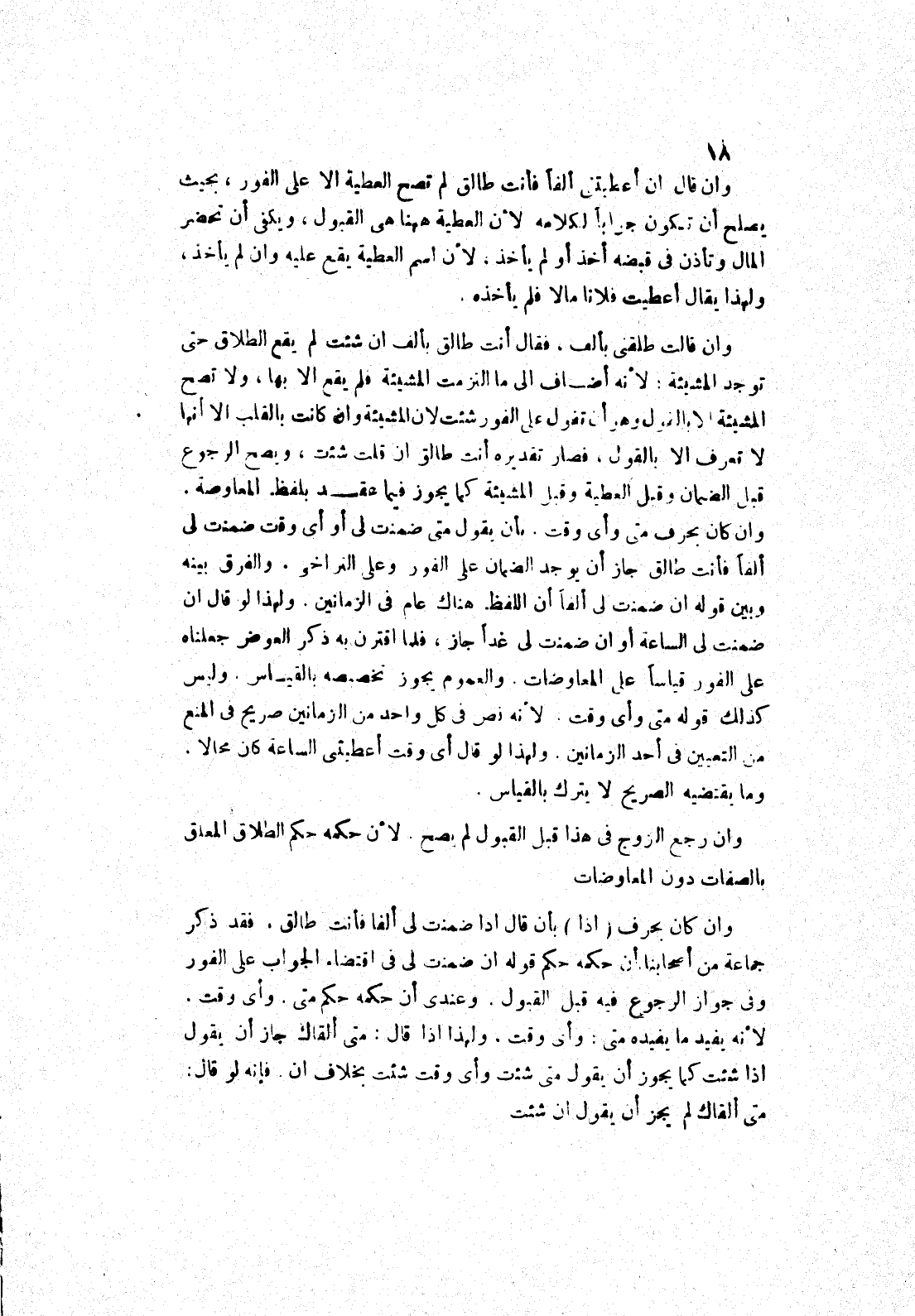 لان حكمه حكم الطلاق المعلق بالصفات دون المعاوضات وان كان بحرف (إذا) بأن قال إذا ضمنت لى ألفا فأنت طالق، فقد ذكر