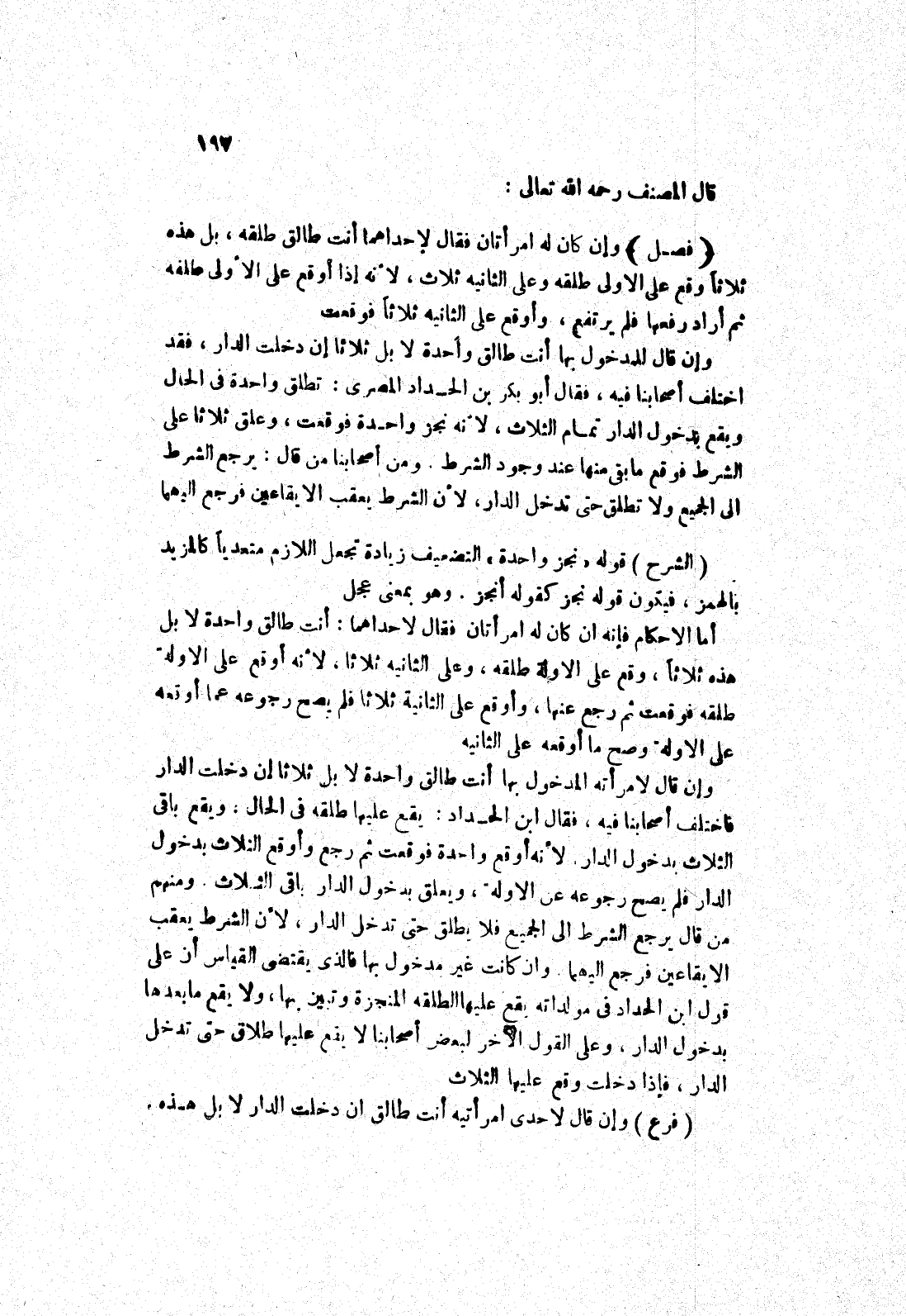 ومن أصحابنا من قال: يرجع الشرط إلى الجميع ولا تطلق حتى تدخل الدار، لان الشرط يعقب الايقاعين فرجع اليهما (الشرح) قوله " نجز واحدة " التضعيف زيادة تجعل اللازم متعديا كالمزيد بالهمز، فيكون قوله نجز كقوله أنجز.