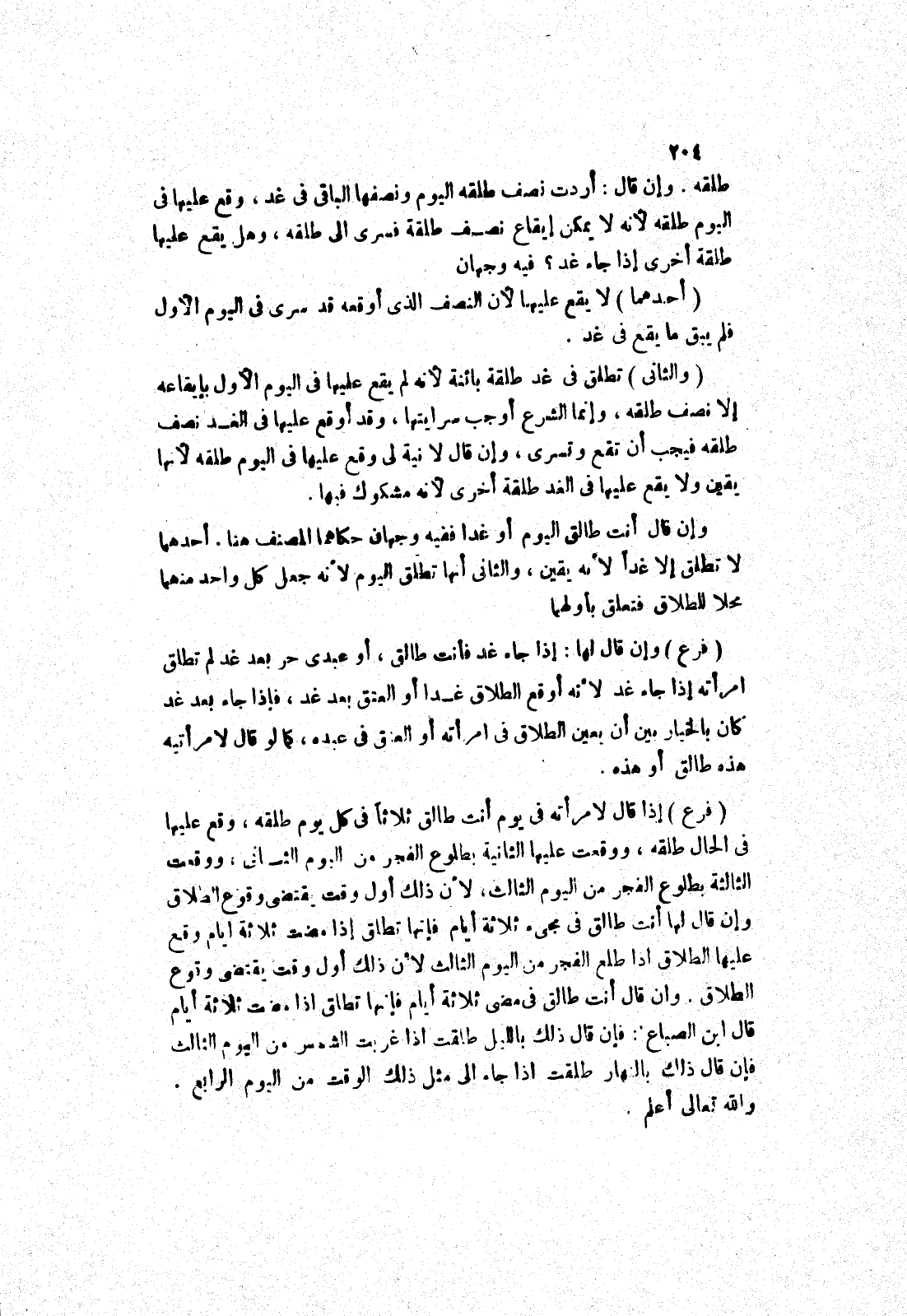 تطلق في غد طلقة بائنة لانه لم يقع عليها في اليوم الاول بإيقاعه إلا نصف طلقه، وإنما الشرع أوجب سرايتها، وقد أوقع عليها في الغد نصف طلقه فيجب أن تقع وتسرى، وإن قان لا نية لى وقع عليها في اليوم طلقه لانها يقين ولا يقع عليها في الغد طلقة أخرى لانه مشكوك فيها.