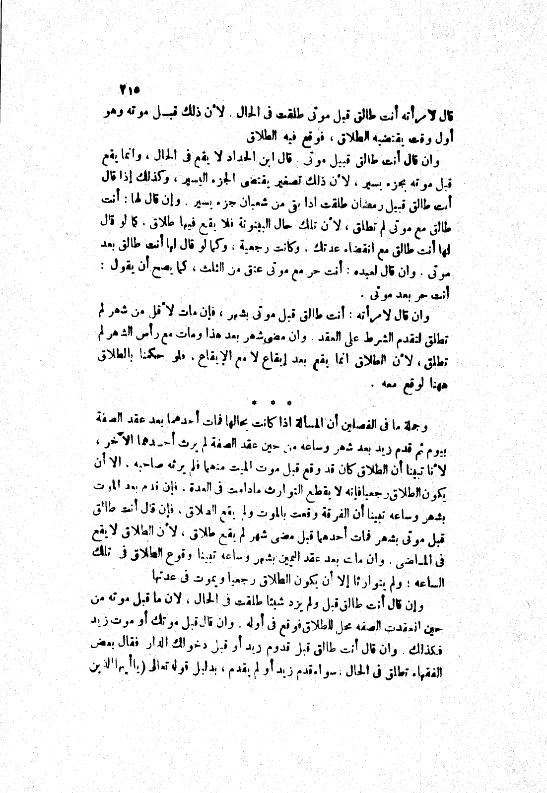 قال ابن الحداد لا يقع في الحال، وانما يقع قبل موته بجزء يسير، لان ذلك تصغير يقتضى الجزء اليسير، وكذلك إذا قال أنت طالق قبيل رمضان طلقت إذا بقى من شعبان جزء يسير.