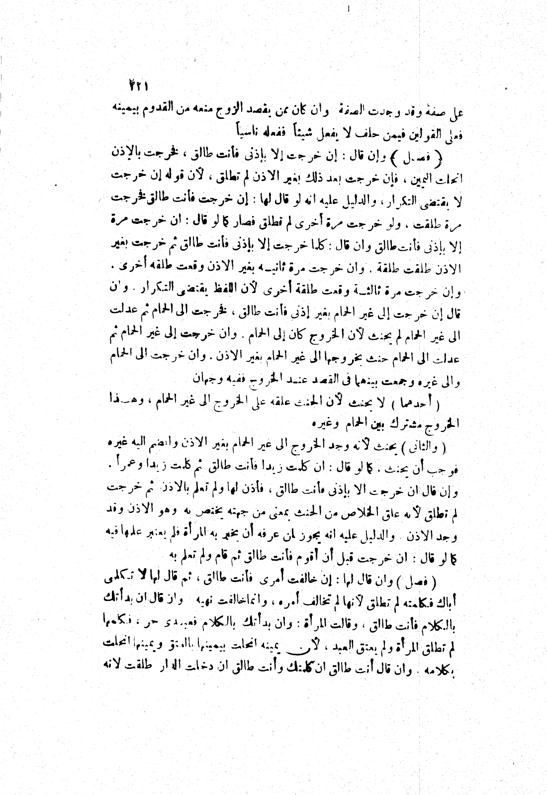 وإن قال: إن خرجت إلا بإذنى فأنت طالق، فخرجت بالاذن انحلت اليمين، فإن خرجت بعد ذلك بغير الاذن لم تطلق، لان قوله إن خرجت لا يقتضى التكرار، والدليل عليه انه لو قال لها: إن خرجت فأنت طالق فخرجت مرة طلقت، ولو خرجت مرة أخرى لم تطلق فصار كما لو قال: ان خرجت مرة إلا بإذنى فأنت طالق وان قال: كلما خرجت إلا بإذنى فأنت طالق ثم خرجت بغير الاذن طلقت طلقة.