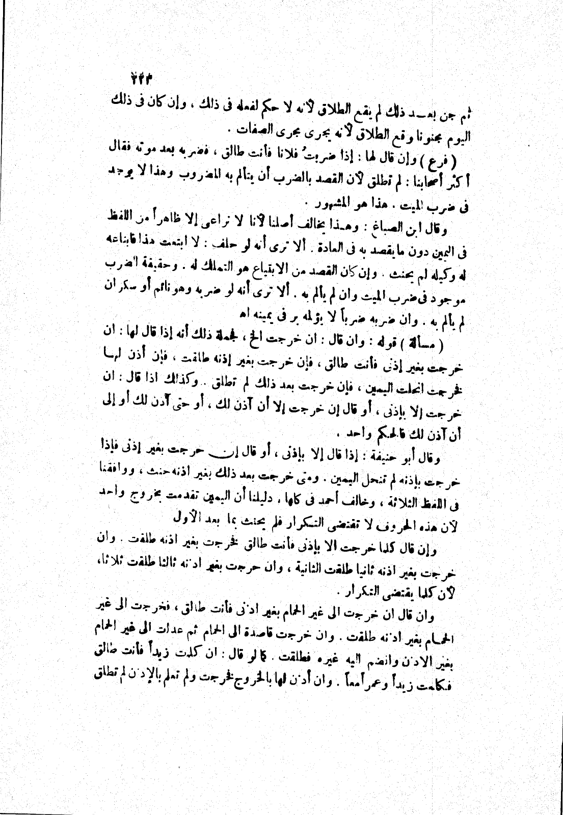 ومتى خرجت بعد ذلك بغير اذنه حنث، ووافقنا في اللفظ الثلاثة، وخالف أحمد في كلها، دليلنا أن اليمين تقدمت بخروج واحد لان هذه الحروف لا تقتضي التكرار فلم يحنث بما بعد الاول وإن قال كلما خرجت الا بإذنى فأنت طالق فخرجت بغير اذنه طلقت، وان خرجت بغير اذنه ثانيا طلقت الثانية، وان خرجت بغير اذنه ثالثا طلقت ثلاثا، لان كلما يقتضى التكرار.