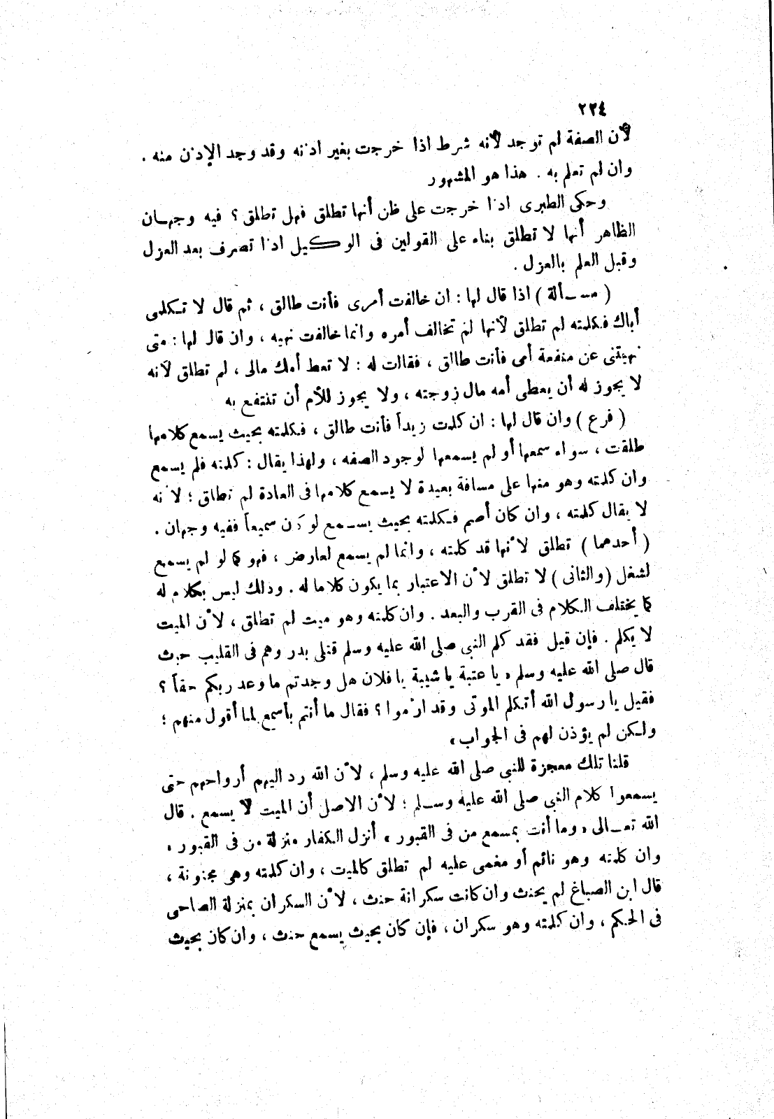فإن قيل فقد كلم النبي صلى الله عليه وسلم قتلى بدر وهم القليب حيث قال صلى الله عليه وسلم " يا عتبة يا شيبة يا فلان هل وجدتم ما وعد ربكم حقا؟ فقيل يا رسول الله أتكلم الموتى وقد ارموا؟ فقال ما أنتم بأسمع لما أقول منهم، ولكن لم يؤذن لهم في الجواب " قلنا تلك معجزة للنبى صلى الله عليه وسلم، لان الله رد إليهم أرواحهم حتى يسمعوا كلام النبي صلى الله عليه وسلم، لان الاصل أن الميت لا يسمع.