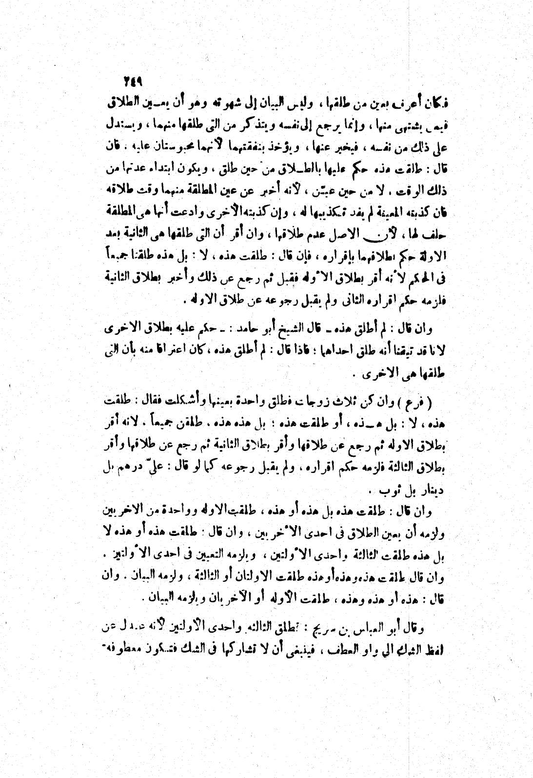 وان قال: طلقت هذه بل هذه أو هذه، طلقت الاوله وواحدة من الاخريين ولزمه أن يعين الطلاق في احدى الاخريين، وان قال: طلقت هذه أو هذه لا بل هذه طلقت الثالثة واحدى الاولتين، ويلزمه التعيين في احدى الاولتين.