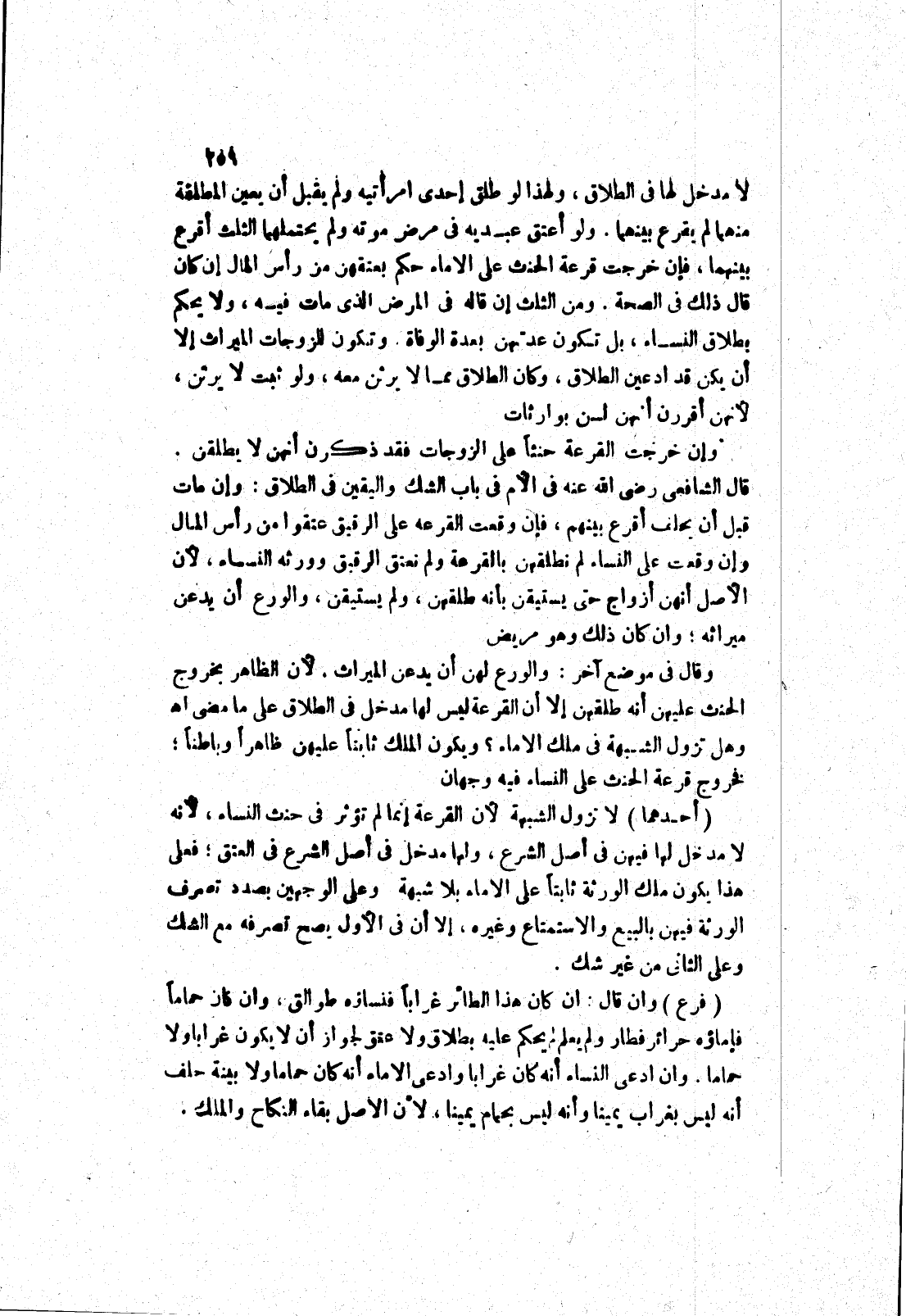 قال الشافعي رضى الله في الام في باب الشك واليقين في الطلاق: وإن مات قبل أن يحلف أقرع بينهم، فإن وقعت القرعه على الرقيق عتقوا من رأس المال وإن وقعت على النساء لم نطلقهن بالقرعة ولم نعتق الرقيق وورثه النساء، لان الاصل أنهن أزواج حتى يستيقن بأنه طلقهن، ولم يستيقن، والورع أن يدعن ميراثه، وان كان ذلك وهو مريض وقال في موضع آخر: والورع لهن أن يدعن الميراث، لان الظاهر بخروج الحنث عليهن أنه طلقهن إلا ان القرعة ليس لها مدخل في الطلاق على ما مضى اه وهل تزول الشبهة في ملك الاماء؟ ويكون الملك ثابتا عليهن ظاهرا وباطنا، فخروج قرعة الحنث على النساء فيه وجهان